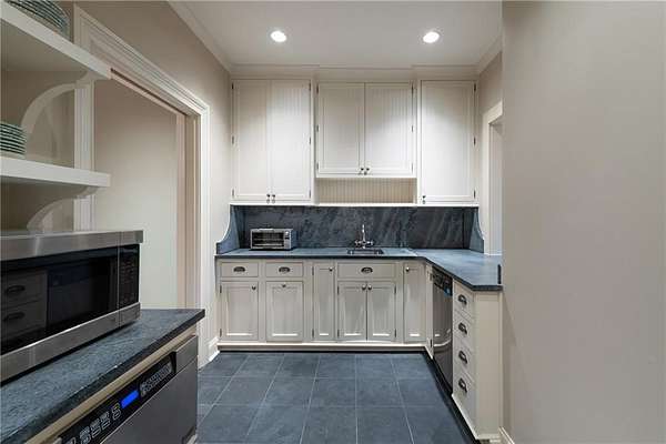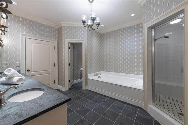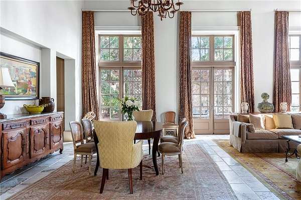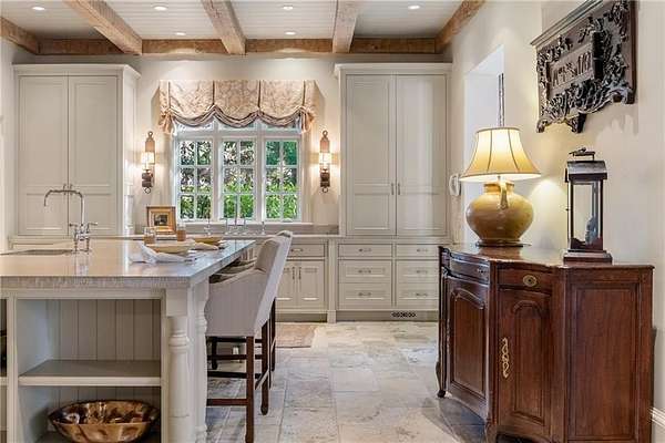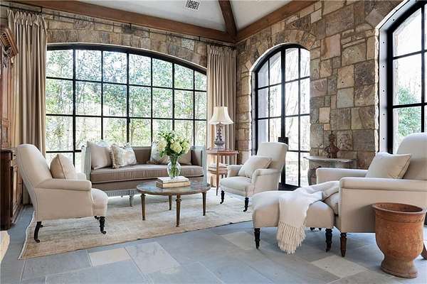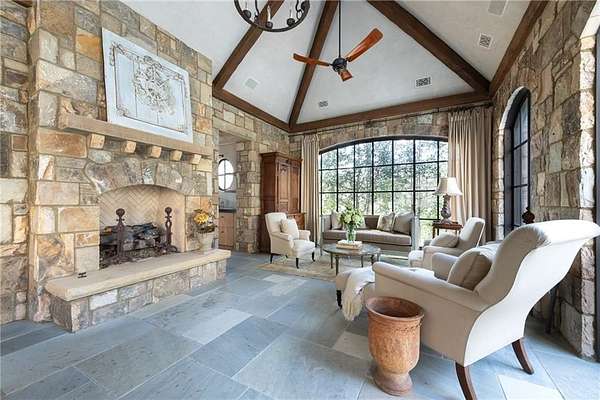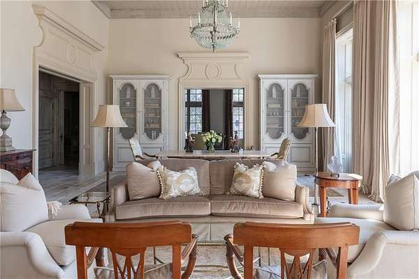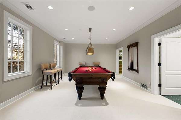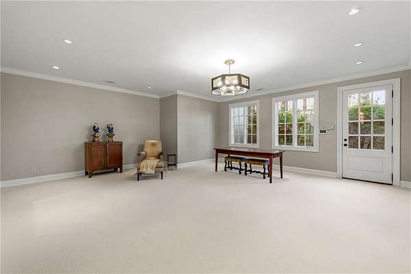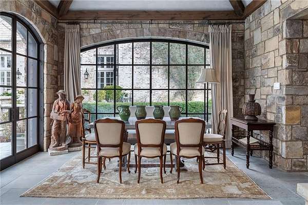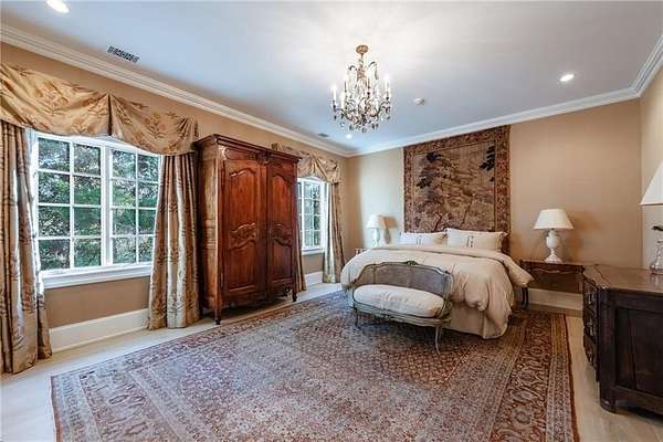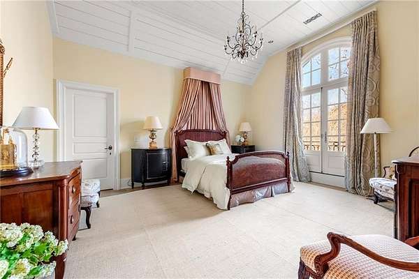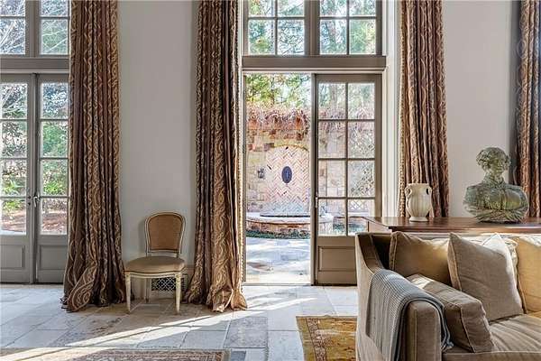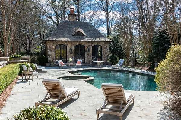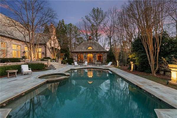 This home is truly magnificent! With its soaring ceilings and beautiful architectural details, it really stands out among other homes available. After entering through the gate, the stately home stands in front of you centered on its +/- 2.2 acre lot. As you enter the front door, there is a gorgeous living room (elegantly decorated by Carole Weaks)with a stone fireplace and 4 sets of French doors opening out to the pool and a stunning pool house designed by Stan Dixon, one of Atlanta's finest architects. At one end of the living room is a dining area that can seat 12. To the left of the living room is a huge, vaulted ceiling Family room, again with a wood burning fireplace, breakfast area, and French doors opening to a patio table area with fountain. The kitchen, pantry, laundry, and family office open to the back of this room which leads to the porte cochere and attached 3 car garage. Also, on the main level as you turn right from the front door is the elegant double primary suite which has double bathrooms and closets, as well as 2 full sized bedrooms. As you ascend the elegant staircase, upstairs you will find 2 large bedroom suites, a laundry/cedar closet, and an attached one-bedroom apartment with private entrance. The spacious apartment has a living room, full kitchen, bedroom and bathroom. The terrace level is expansive with a large daylight family room, charming bunk room, full bath, kitchen, gym, and beautiful office with iron doors, as well as tons of storage. ELEVATOR to all 3 levels and other special features makes it fully handicap accessible which is important to know. Gorgeous heated, saltwater pool and pool house grace the back of the property with its private wooded backyard. Also additional features include a Well, whole house water filtration, leak alarm system and a generator. A very special home!!