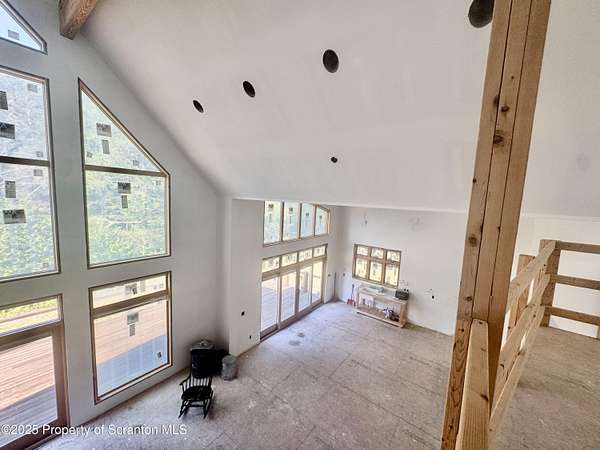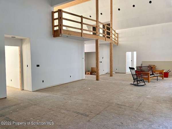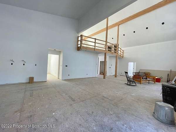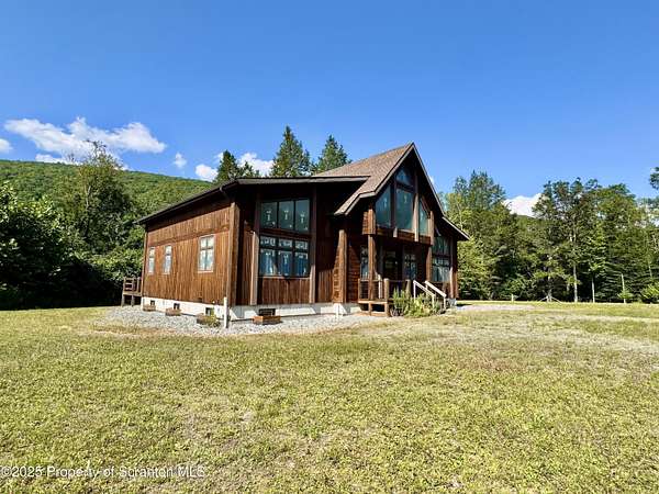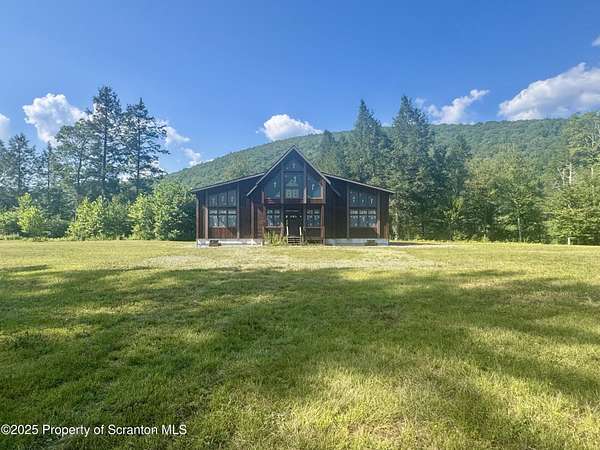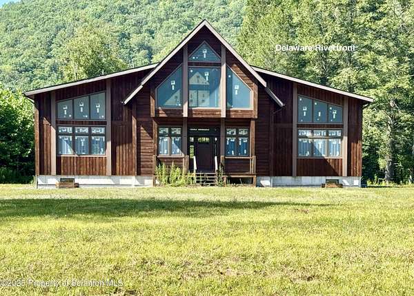 MODERN RIVERFRONT CHALET ON 22+ ACRES ALONG PENNSYLVANIA'S ''RIVER OF THE YEAR''! Experience a setting like no other! This stunning Beaver Mountain home sits high above the Wild & Scenic Upper Delaware River on 22.65 acres, boasting over 1,100 feet of pristine, private river frontage. Recently honored as Pennsylvania's River of the Year, the Delaware offers unmatched beauty, recreation, and wildlife right outside your door. Designed for both comfort and grandeur, the home features soaring 26' cathedral ceilings, in-floor heat, 3-4 bedrooms plus a loft, and 3 baths. Originally started around 2015, the structure is nearly complete -- it just awaits your personal touches - systems are in and functioning, drywall is primed, and it's ready for you to add the final finishes to match your style. Whether you envision a modern riverfront retreat, a year-round escape, or an outdoor lover's paradise, this property delivers it all. Kayak, fish, or simply soak in the incredible views from your own private stretch of river.