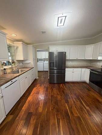 Peaceful country living from the inside out, on 2 pristine, wooded acres; this one has it ALL! A quality-built manufactured home featuring solid construction like real sheetrock walls, beautiful wood and tile flooring, crown molding throughout, LED lighting and updated metal roof. Recent updates and upgrades include HWH, Rheem Halo fresh air HVAC, Bosch DW, complete water filtration system, and a convection and air frying range. All this and the 90% solar screens provide the most in energy efficiency. Spacious bedrooms with custom built in features, open concept living and dining floorplan, split layout and tons of storage. Additional special touches in the kitchen are the touch response above and below cabinet lighting, lazy Susan, Farm sink, 2 pantries, updated GFCI USB outlets, and even plugs above the cabinets for holiday decor. Want more? How about the oversized, fully insulated detached garage complete with an innovative bodywash shower as part of the full bathroom, tankless HWH, surround sound system and receiver, and decorative FP. Flexible space for a workshop and or additional living quarters potential. Outside, is full RV hook up and spare parking options, firepit for enjoying a night under the stars, she-shed, bonus parking for your lawn equipment, bougee chicken coop and pen, flagpole and decorative windmill. How about relaxing on the expansive, TREX built porch, swinging and watching the beautiful Texas sky masterpiece? Want additional acreage? The neighboring lot is also for sale. Not to mention less than 2 miles from Lake Palestine boat ramp! The list goes on and on! You truly have to see it to believe it, so schedule your visit today...before this one gets away!