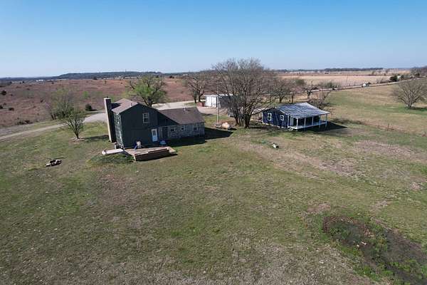 Situated on 15.3± acres, this private rural property offers a rare combination of space, improvements, and versatility. The land is fully perimeter fenced and mostly cleared, with clusters of mature trees providing shade and character, along with a scenic pond. A dead-end county road leads you to a gated entrance, enhancing privacy and seclusion. An in-ground storm shelter adds peace of mind, making this property as practical as it is picturesque. The primary residence features 3 bedrooms and 2 bathrooms with approximately 2,007 square feet of living space (per courthouse records). Originally built in 1950 with an addition completed in 1980 (per CH), the home has seen extensive interior remodeling while maintaining its charm. The living area showcases a wood-burning fireplace and wall-to-wall windows that bring in natural light and views of the surrounding acreage. Two bedrooms and both bathrooms are located downstairs, while the upstairs offers a large bedroom with bay windows and an attached flex room with an additional closet-ideal for an office, nursery, or hobby space. Mechanical updates include two HVAC systems approximately six years old (one electric, one propane), replaced propane lines, and a newer aerobic septic system installed about two years ago. Adding exceptional value is a 936-square-foot guest house built in 2023 (per owner), complete with a metal roof, propane tankless hot water heater, propane fireplace, and a mini-split system for efficient heating and cooling-perfect for guests, extended family, or rental potential. The property is further enhanced by two shops: a solid older 30x30 shop with electric and a large barn-style sliding door, plus an impressive 40x60 red-iron shop built approximately four years ago. The newer shop is insulated, features electric and water, a wood-burning stove, two walk-through doors, two 12x12 overhead doors, and a 14-foot ceiling, making it ideal for equipment storage, business use, or serious hobbies. This well-rounded property offers rural living with modern conveniences and exceptional functionality.