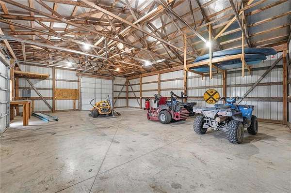 BACK ON THE MARKET THRU NO FAULT OF THE HOME/SELLER SIDE. OPPTY. IS OPEN! Exec.-style 4 bdrm./1 ofc., 3 bath, 3 car gar. home w/a handsome shop, w/heavily timbered acreage backyard, paved road, easy access to everywhere, a rare find. An inviting open layout, gorgeous hardwoods, revealing the hub of the home-the liv. rm., kit. & din. area. The beautiful kitchen features recessed lighting, granite countertops, a center island, walk-in pantry, built-in hutch, dbl. sinks, ss appl., task lighting. Lg. windows fill the space w/natural light & frame your rural scenery. The lg. primary suite is a true retreat, featuring coffered ceilings, abundant windows & tiled bathroom with a private water closet, double granite vanity, and a "wow" walk-in shower/seat. The large walk-in closet includes custom built-ins. Bdrm. & closet connect conveniently to the laundry room. A 2nd bedroom and full bath are also located on the main level, both finished in soft, neutral tones. The wide staircase is a pretty focal point in the home, leading to the lower level-home to a spacious family room with a gas-starter fireplace, wet bar, game closet and custom shelving. You'll also find two more generous bedrooms, another full tiled bath, and a spacious home office. Other pluses-a dedicated storm shelter & storage area in the unf. part of bsmt./utilities. This home truly has it all-the perfect blend of comfort, luxury, privacy, and nature. It feels nearly new and showcases quality craftsmanship in every detail. Addl. ext. features include a 3-car attached garage, a lg. backyard deck, covered patio, recessed soffit lighting for your landscaping, covered entry way, garden beds, 4 wheeler trails & your own private hunting spot/nature exploration. An amazing 40x30 shop equipped with a 200-amp electrical panel, an 8-ft. covered overhang, an RV door, standard door & man door. Located on a paved road just off Hwy 59, this exceptional rural property offers easy access to major hwys. Click on the video!
