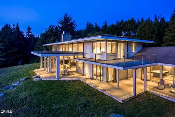 A palatial offering in Little River, CA, minutes south of Mendocino. Nearly 8,000 square feet encompassed by the main residence and guest cottage with panoramic ocean views on 23 acres at the end of a private drive above Buckhorn Cove. Meticulously updated over the last five years by the second owner, including all new roofs, new plumbing and electrical, new chimneys with copper, all doors and windows replaced and/or re-engineered, cleared areas throughout the majestic surrounding forest and updated security systems, with many additional upgrades.Downstairs include an elegant office space, media room, game room, kitchen and great room along with an expansive laundry and service area. Luxury ocean view guest bedroom and a full bath.Upstairs are two very large bedrooms, primary and guest, with floor to ceiling glass for every moment of the day and night creating unobstructed views of the meadow and trees leading to the horizon over the Pacific Ocean.A detached guest cottage with a fireplace and private access to the spa deck. A top of the line new spa awaits your enjoyment.Within the completely landscaped grounds surrounding the home is a beautiful barn with access from both ends allowing for large vehicles to drive through. One could imagine creating an ideal living space for animals or non-living toys.This is an irreplaceable property with truespectacular architecture and construction. You will not find another home like it anywhere.