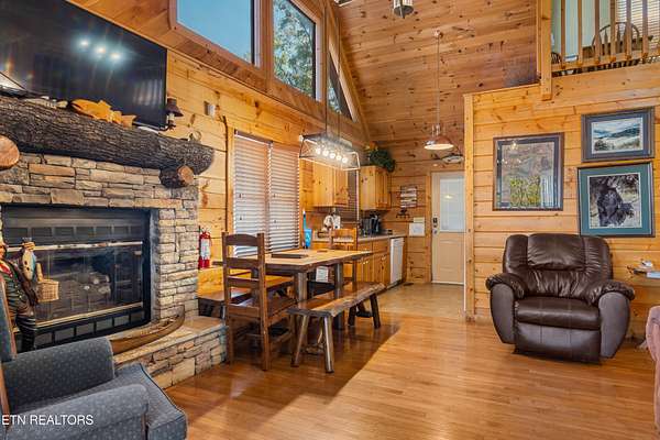 Breathtaking Smoky Mountain Retreat - 2BR/2BA + Loft Cabin with Unmatched Views..... Don't miss this rare opportunity to own a stunning 2-bedroom, 2-bath cabin with a loft, boasting one of the most spectacular panoramic views in all of the Smoky Mountains! This property has 3.35 acres to use privately or expand and build another cabin or two. This beautifully maintained cabin features an open-concept floor plan, where a cozy living room with a stone fireplace flows seamlessly into the dining area—perfect for entertaining or relaxing after a day of mountain adventures. Stunning hardwood floors. Well-equipped kitchen with all appliances (new dishwasher). Both bedrooms, with newer carpet, are conveniently located on the main level, with the primary suite offering a private ensuite bath and walk-in shower. Venture upstairs to the loft, which has newer flooring and a game room with a pool table, which adds to the enjoyment of vacationing or calling this place home. Wake up to awe-inspiring sunrises and wind down with star-filled nights from your expansive two-level wrap-around decks. Whether you're enjoying morning coffee or unwinding in the state-of-the-art newer hot tub, the majestic views of the Smokies will never get old. Tucked away in peaceful seclusion, yet just 4 miles from Pigeon Forge and a short 15-minute drive to Dollywood, Dolly Parton's Stampede, Splash Country, premier shopping, dining, and the Great Smoky Mountain National Park—this cabin offers the best of both worlds. Additional features include: *Commercial-grade water filtration system installed in 2017 *New additional well water storage tank *Ideal for personal use or investment rental property. If you're looking for a mountain cabin with unforgettable views—this is the one. Schedule your showing today and experience the magic for yourself! https://www.airbnb.com/rooms/892100172358484774?source_impression_id=p3_1766069044_P3BJDMqBLUPeg9jx