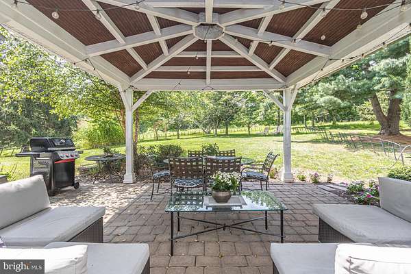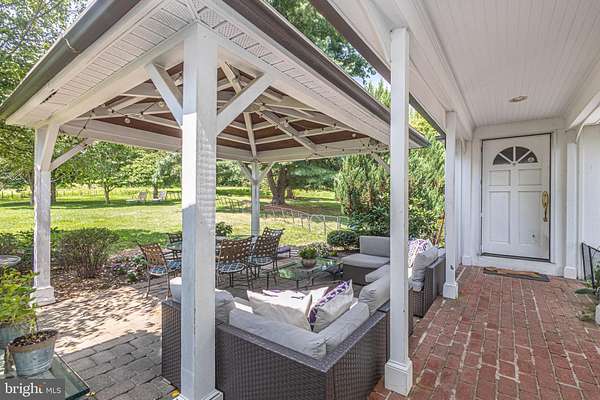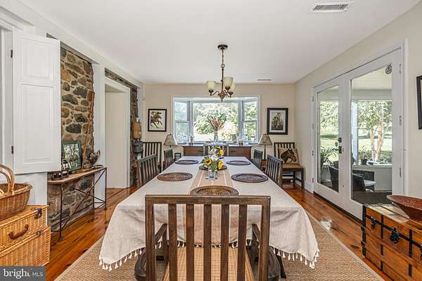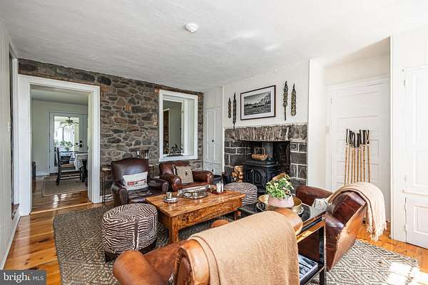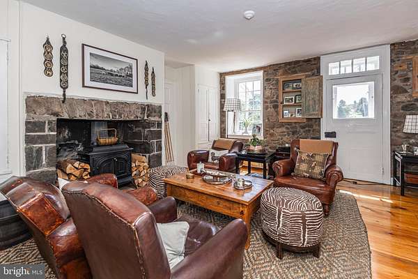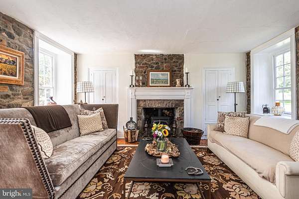 Flower Farm offers a rare blend of history and charm on a 5.25 acre parcel in picturesque Upper Makefield Township. At its heart lies a distinguished 1795 stone farmhouse, gracefully complemented by a separate in-law/guest cottage, and equestrian potential with a five-stall horse barn. The main residence showcases wood flooring throughout the first level, where timeless elegance meets everyday functionality. A formal living room and family room, each with their own fireplace, flank the foyer. The formal dining room-perfect for entertaining-features exposed stone walls and French doors that open to a brick floored screened porch perfect for enjoying informal family gatherings or a morning cup of coffee. The spacious kitchen with its stainless steel appliances , newly installed granite countertops and thoughtfully designed layout invite intimate gatherings. Also, on the first floor is a flex room (study or bedroom) along with a full bath. Upstairs, the second floor offers a serene primary suite, two additional bedrooms, additional space for a home office and a walk-up third floor attic, ready for thoughtful updates. Step outside onto a covered porch, breezeway, and vine-draped pergola, that seamlessly connects to the adjacent guest cottage. This charming in-law/guest cottage boasts its own eat-in kitchen, cozy living room with fireplace, first-floor bedroom and full bath, and hardwood floors throughout. The second level provides a private suite complete with a full bath and walk-in closet. Perfectly suited for a multi-generational family compound or weekend retreat, this charming property offers peace and privacy, yet remains just 90 minutes from New York City, 50 minutes from Philadelphia, and 30 minutes from Princeton.