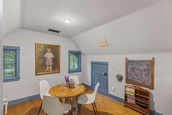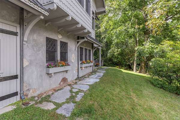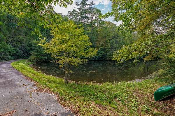 This is a rare opportunity to own acreage and one of the most unique homes in the area, and with views of Shortoff Mountain! 16.43 acres with two ponds, a custom-built house by Tommy Chambers, pump house, a large garage and an additional building. From the covered front porch, enter into a unique foyer with a wood-burning stove, stone floors and access to stairs leading up, the laundry room, a large game/viewing room and full bath. There is an elevator off the laundry that also can access the second level. As you walk up the stairs you are greeted with a generous family room with a large stone fireplace, and open to the kitchen and dining areas. Note the details like wood ceilings and beams, bay windows, stained glass windows, custom wood cabinets, old doors with transoms and unique lighting fixtures. The primary suite is located on this floor as well as a second bedroom and bath. Enjoy views of Shortoff Mountain from the dining area or primary bedroom. The upper level has a room that could be a studio, office or playroom and the third bedroom. The antique pine logs (circa 1865) are from a cabin in Thomasville, Georgia and the antique heart pine wood (circa 1875) is from a railroad station in Charlotte. The roof is a standing-seam metal, there are copper gutters with antique scuppers and lightning protection. Outside is a stone terrace and a covered area perfect for outdoor dining. The house overlooks a meadow with fruit trees, bushes and vines, and a double-door garage with workshop and unfinished second floor. Follow the asphalt drive that borders the property to view the 16-acre property, two ponds, an additional building and underground utilities. Use as a private mountain retreat or subdivide the acreage up to 4 additional estate lots. Only minutes to downtown Highlands, ranked America's Best Small Mountain Town by Travel & Leisure Magazine in 2021.