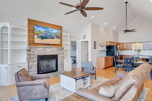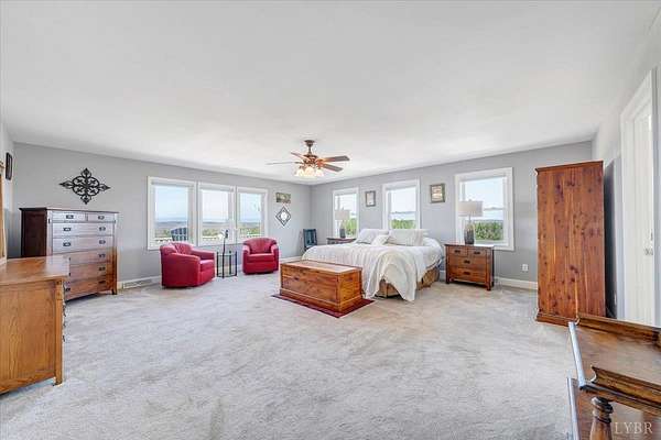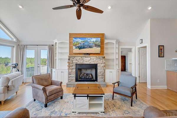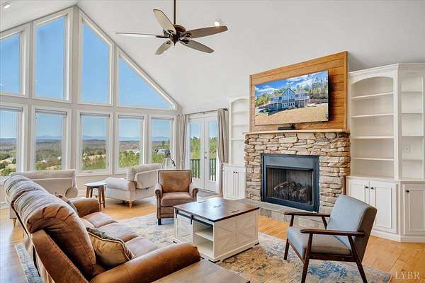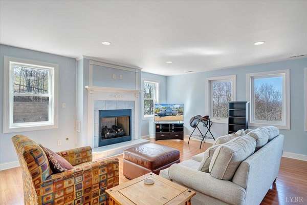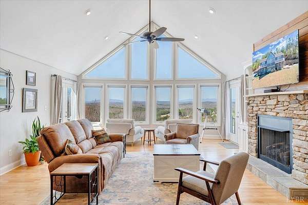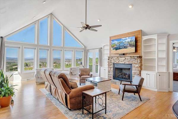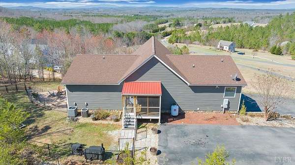 Perched on a scenic knoll, this inviting 3-bedroom, (4th bedroom option in large apartment space below) 3-bath home offers peaceful country living on 3.57 beautiful acres. (includes 1 acre separate parcel w/ provided soil work) Inside, soaring floor-to-ceiling windows fill the home w/ natural light while showcasing the surrounding landscape & mountain views. The spacious layout includes a generous terrace-level recreation area perfect for entertaining, hobbies, or additional apartment/living space. Dual porches provide ideal spots to relax, unwind, & take in the stunning views of the rolling property & sunrise/sunset views. With privacy, charm, and room to enjoy the outdoors, this property offers the best of quiet country living while still being convenient to town. 30 min to LU, 3 hour to DC, 1:45 to Richmond, and 1:15 hours to UVA/Charlottesville. Tons of upgrades include hardscape, 3 sets of french doors, fireplace and stone, appliances, paint, flooring, and more! No HOA!