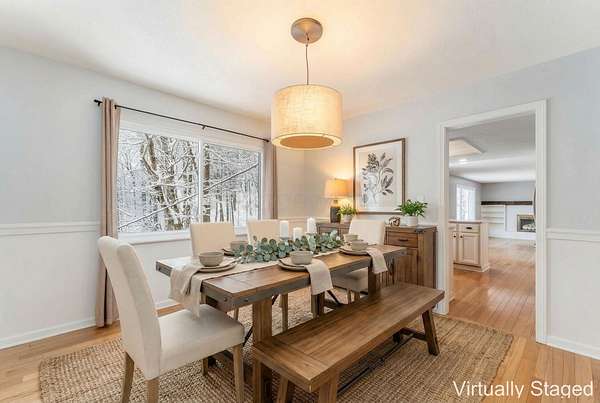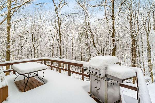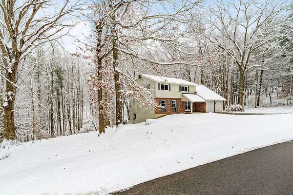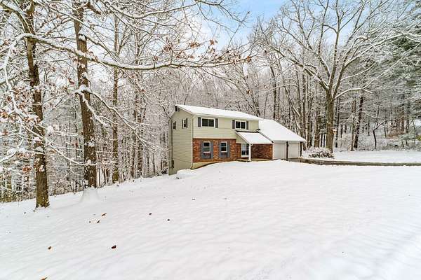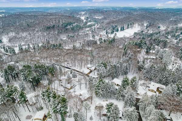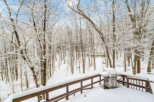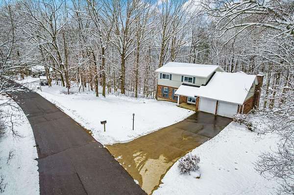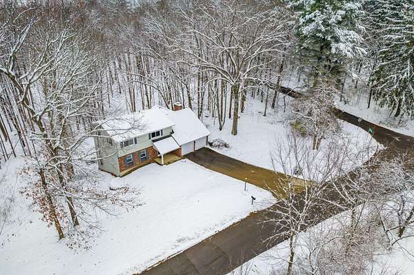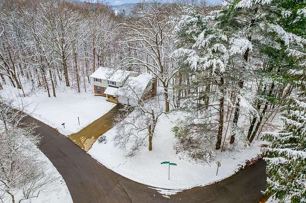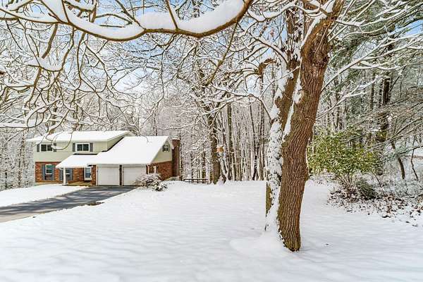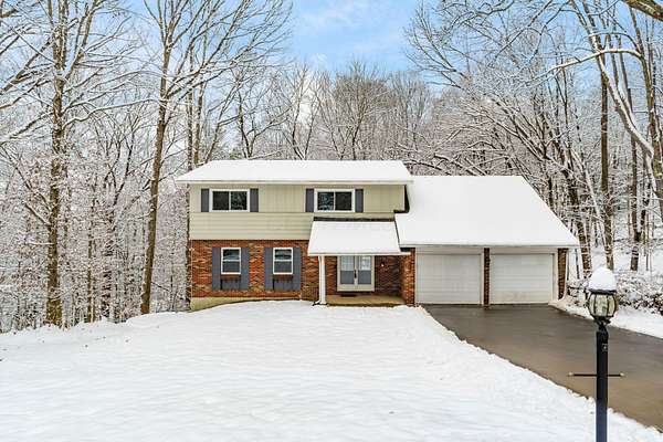 Impressive two story in the Evergreen Hills neighborhood of Granville! This two story 5 bedroom, 3.5 bath home is being sold with two stunning wooded rolling parcels totaling 1.5 acres. Beautiful oak hardwood flooring sets off generous living spaces. Seller added massive picture window to the family room allowing light to flood in and offering spectacular views. Also enjoy the setting from the deck and expansive lower level poured concrete patio with fire pit. Two of the five bedrooms have private full en suite baths while the 5th bedroom has been converted to a private library with 2 secret hidden doors one of which leads to the 4th bedroom! The walk out lower level has wood stove and atrium doors to back patio! Other updates/upgrades include; new 40 year shingle roof (2021), new low e windows first and second floor (2021), all new interior doors (2022), wood stove added to lower level (2021), updated deck with high-performance composite decking(2022), new 200 amp electrical panel (2021)! So much to offer in a beautiful setting. Evergreen Hills offers optional membership to private club with pool, clubhouse and community garden!