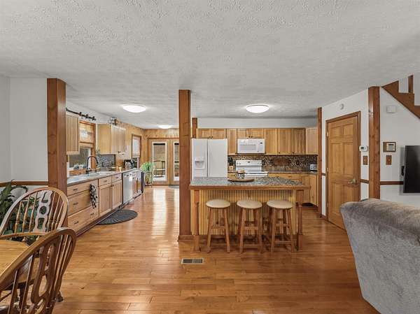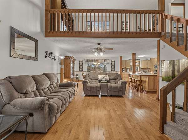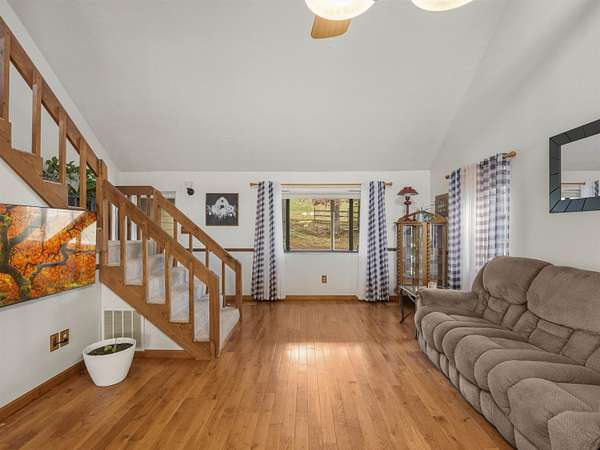 Est $2,962,856/moEnjoy peaceful living on this beautiful 9.61 acre property. The first-floor primary suite and open kitchen, dining and living areascreate an easy, comfortable flow for daily life. A spacious utility room connects to a private in-law suite above the oversized 2-car garage, making it ideal for guests, multigenerational living, or a studio. The lower level offers a flexible 4th bedroom with itsown entrance, plus a relaxing sauna. A 3-stall horse barn adds room for animals, hobbies, or equipment, making this theperfect of home, land, and lifestyle.