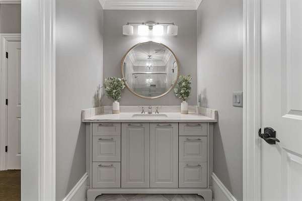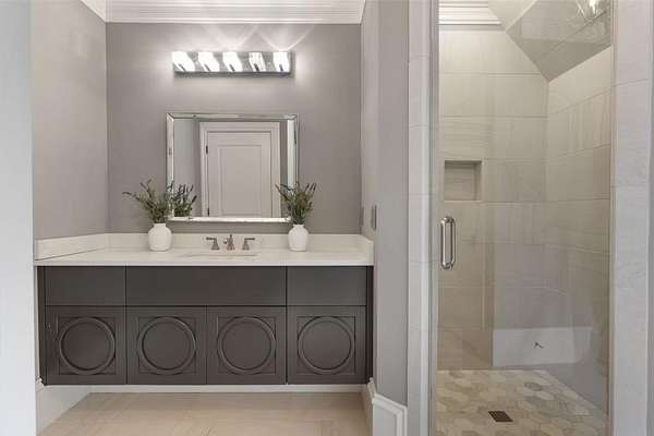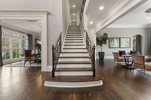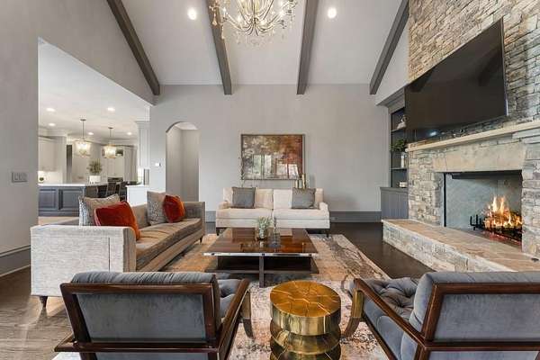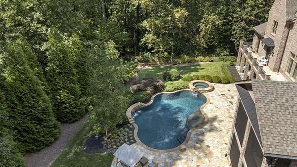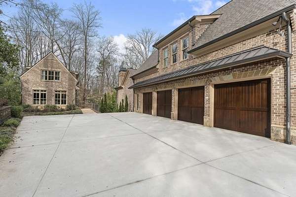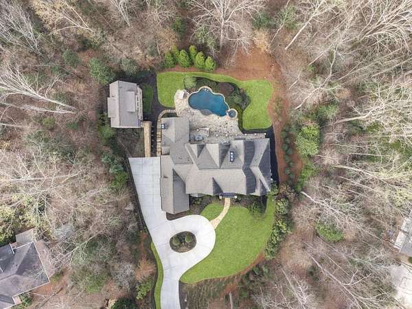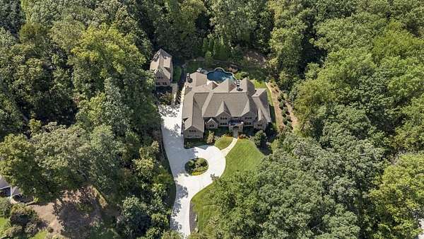 Privacy beyond measure abounds on this 2 +/- acre gated estate. Brilliantly crafted by Mark Alan Homes LLC in 2016. The Owners spent over 2 1/2 years looking for a grand setting for this magnificent estate home. Backing up to protected green space. The main house and guest house are all brick and stone with manicured lawns by Ed Castro Landscape. Inside, the home opens to wide hallways, high ceilings, every space is richly detailed. The main level living is anchored by an expansive chef's kitchen appointed with Sub-Zero, Wolf, Bosch, and Scotsman appliances, featuring an oversized Quartzite island and dedicated scullery. Open floor plan leads to fireside Keeping room and outdoor screened porch. The private study w/ Pocket doors is a perfect retreat for business. A dramatic hand painted banquet-sized dining room is located just steps from the scullery and service area, and a paneled elevator connects all 3 levels. The glamours primary suite offers a wing in itself on the main level. Beautiful ceiling details, fireside sitting area, glass doors open to a private balcony overlooking the pool and lush backyard. The marble spa- style bath with soaking tub, steam shower and rich cabinetry lead to a custom built closet with island and chandelier. A laundry room and wet bar add to the suite's functionality. The home features custom wrought iron that add character and craftsmanship throughout the interior and exterior spaces. The terrace level is complete with custom bar that opens to large entertaining spaces with TV's, game room, bedroom, theater, state of the art gym with full bath, steam shower with aromatherapy. Three sets of French doors open to the outdoor porches. In total the home has 7 fireplaces, 2 are located on both screened porches, 4 laundry rooms, a generator that serves both the main home and the guest house. A large 4-car garage comes fully equipped to support up to four electric vehicle charging stations. Outdoor living is a defining Feature of the property. A heated saltwater pool and spa are framed by covered porches, a grilling and bar area designed for year-round enjoyment. The three-story guest house mirrors the quality and craftsmanship of the main residence. Featuring an open floor plan on the main floor overlooking the pool. The kitchen is equipped with Kitchen Aid SS appliances and gas stove with 4 burners, Quartzite counters all open to the dining and family room full of natural light. Two large bedroom suites with sitting areas, two full, and one half baths, stackable laundry room in the upstairs level. The lower level has a cozy den area with desk and French doors to walk out pool. Carefully designed and meticulously maintained. It is a residence built not only to impress, but to live in, now and for years to come.