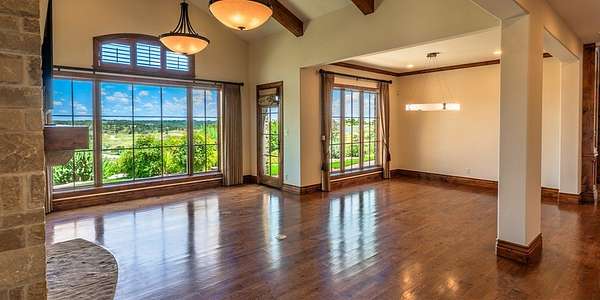 Welcome to your private Hill Country sanctuary. Set on 6.77 beautifully landscaped acres, this exquisite estate seamlessly blends rustic charm with refined luxury. Nestled amid rolling hills and lush greenery, this one-of-a-kind property offers panoramic views, ultimate privacy, and timeless elegance. The main residence greets you with an inviting stone exterior, rich wood accents, and a grand front entryway. Inside, the home boasts soaring ceilings, exposed wood beams, and finely crafted architectural details throughout. A spacious living area opens up to the outdoors, allowing natural light and breathtaking views to fill the space. The gourmet kitchen is a chef's dream, featuring a large center island, custom cabinetry, a butler's pantry, and high-end appliances--perfect for both entertaining and everyday living. Just off the main living area, the elegant library/dining room exudes warmth and sophistication, complete with custom built-ins, beamed ceilings, and a statement chandelier. The luxurious master suite offers a tranquil retreat with spa-like amenities, while multiple guest suites ensure comfort for family and friends. In addition to the main home, the property includes a detached guest house with its own living room, kitchen, and private bedrooms--ideal for multi-generational living or hosting guests. A charming upper-level bunkhouse above the three-car garage provides even more flexible space for recreation or accommodations. Step outside to expansive covered patios, native stone walkways, and a built-in fire pit--perfect for stargazing or taking in the sweeping Northern views. Whether you're relaxing by the fire, enjoying a glass of wine at sunset, or exploring the natural landscape, every corner of this estate invites serenity. A Boot Ranch Club Membership is required with each property purchase. The Boot Ranch multi-generational membership extends member privileges to your parents, grandparents, children, adult children, grandchildren, and all their spouses so your family can enjoy exclusive membership privileges without additional membership dues. Make this home your luxurious vacation getaway, or a great full-time residence for entertaining family and friends in the Hill Country. Call (830) 997-6200 to schedule a private showing of this one-of-a-kind Hill Country residence. Don't miss your opportunity to become part of Boot Ranch, the finest private club community in Texas.