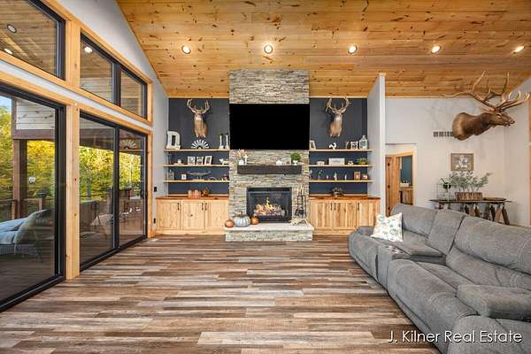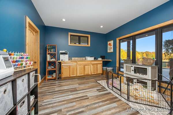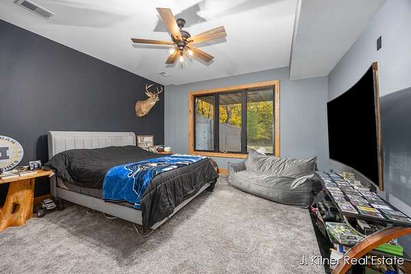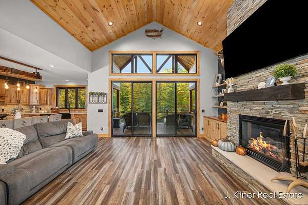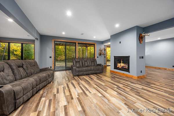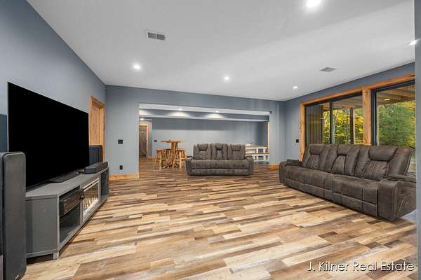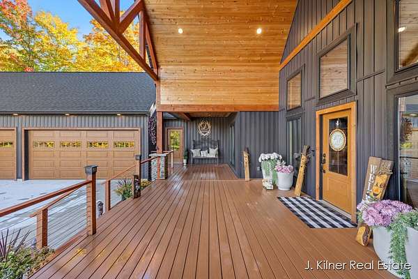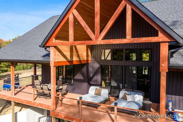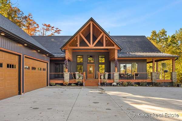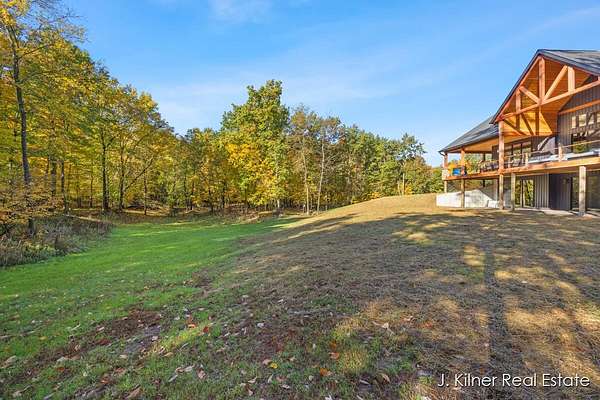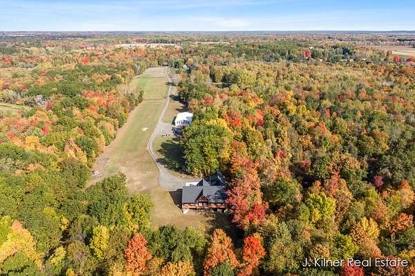 Incredible Property only 25 Minutes from downtown Grand Rapids! With 65 private, wooded acres completely set up for hunting with stands, blinds, trails, and food plots; it is an absolute hunter's paradise. The 2023 Built luxury home is magnificent with no expense spared. Set way back on the land with a wrap around porch and deck, vaulted ceilings, incredible views and a four stall heated garage. The enormous outbuilding (58X110) is equipped with a full size airplane hangar door, a 12 ft overhead door, internet, and a loft/office area. See the documents for a full list of amenities for the house, the land, and the outbuilding. This home and property is truly a must see for those who desire the seclusion and beauty of nature, the convenience of being close to the city, and a home with every provision for comfort and good living.