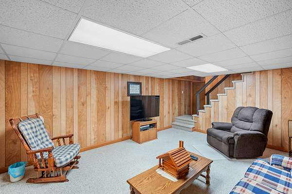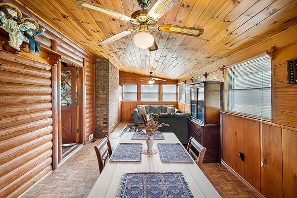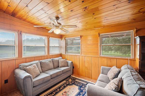 Step inside to a spacious living room adorned with beautiful exposed wood beams that highlight the home's rustic charm. A bright sunroom bathes the interior in natural light throughout the year, while the partially finished basement presents endless possibilities for a media room, home office, or hobby area.
