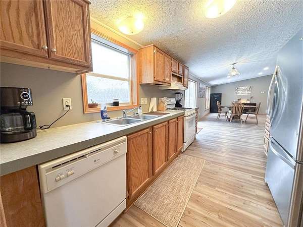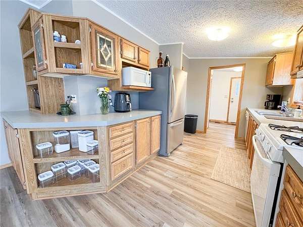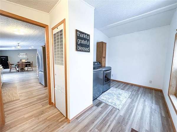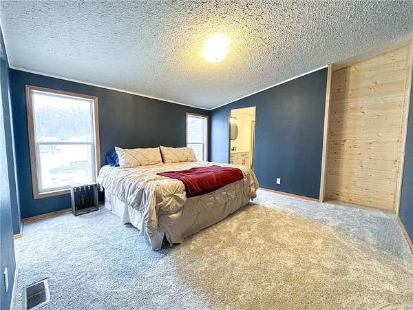 Enjoy quiet country living with this beautifully remodeled 4 bedroom, 2 bath manufactured home set on 5 acres. The home features a spacious primary suite with an attached bath and two walk-in closets, plus a bright, open layout with new sheetrock, flooring, lighting, and many updates throughout. Step outside to a brand-new deck where you can relax and take in the beautiful views. The property includes an insulated 3+ stall garage, perfect for vehicles, hobbies, or extra storage. Surrounded by trees and wildlife, this location offers peace, privacy, and great hunting opportunities. Truly move-in ready--all the hard work has been done!