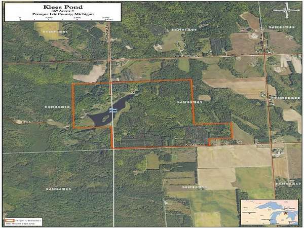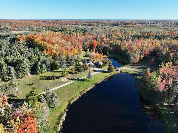Incredible opportunity to own 372 acres that encompasses 23-acre Klees Pond. The pond was constructed in the 1960s and features hard banks, grassland approaches, multiple bridges, and a unique island, generating a truly northern Michigan setting. The dwelling has updated bathrooms, kitchen, and scenic views the length of the pond. Other improvements include a small guest cabin and several garages/storage buildings. As you travel away from the improvements, a network of interior trails meander over the rolling landscape to multiple food plots, mature hardwood stands, pine plantations, deer blinds, and clusters of apple trees. Equipment to maintain grounds will be included. Klees Pond is an exceptional property and opportunity, the likes of which rarely come to market.