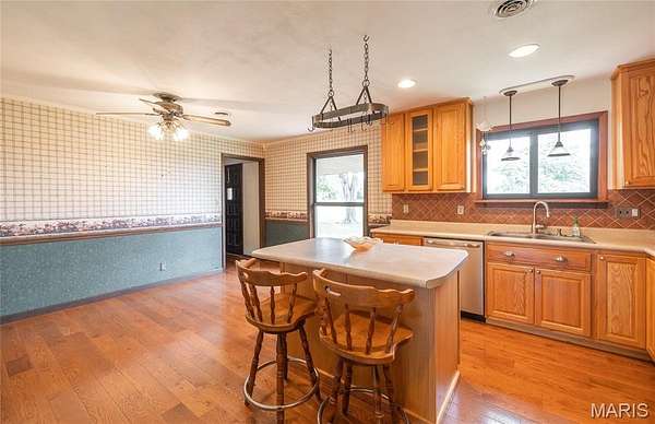 SO MUCH TO OFFER! Room to Breathe, Space to Grow -This 4-bedroom, 2-bath brick raised ranch gives you solid, comfortable living with just the right amount of elbow room--sitting on 3 peaceful acres with a 30x40 shop and carport ready for work, hobbies, or storage. Step inside to find custom oak cabinets, hardwood floors and a walk out basement with full bathroom. The Custom kitchen is warm and welcoming, with plenty of cabinet and counterspace. Natural light pours in, and the updates are smart: a 4-year-old roof and new siding. The bedrooms offer a balance of coziness and functionality--ideal for families, guests, or even a home office. Outside, the acreage gives you privacy without isolation, room for a garden or chickens if you'd like, and a1280 sq ft shop that's ready for business. Whether you're upsizing, downsizing, or just craving some breathing room--this is a place that works hard and lives easy.