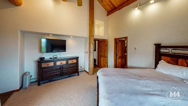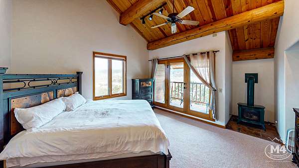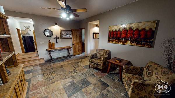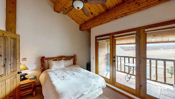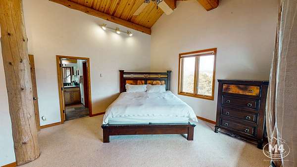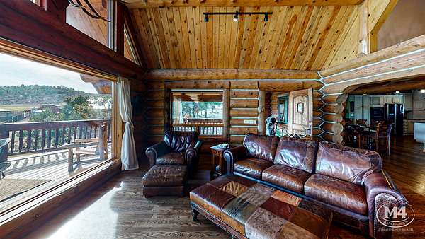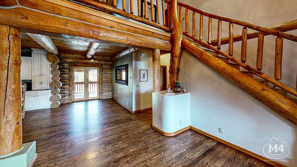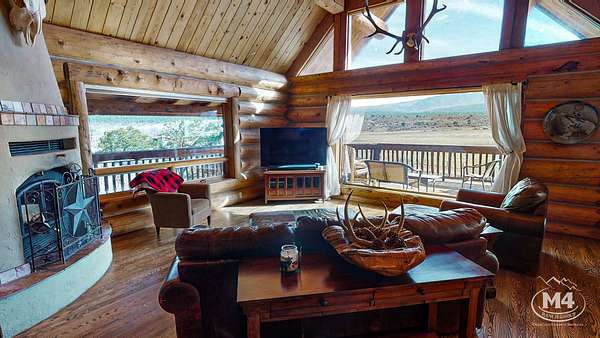 The 5-bedroom, 4-bath main residence is a custom Swedish Cope log home built for durability and year-round use. The exterior was sealed and stained in 2024. Interior living areas were repainted in 2024, and hardwood floors were refinished with new carpet installed in 2025. The main floor is served by in-floor heat and complemented by one wood-burning fireplace and three gas fireplaces. The primary suite opens to a private balcony oriented toward the La Plata and Sleeping Ute views. Landscaping improvements were completed in 2025. Two Mancos Rural Water taps supply domestic water to the home.