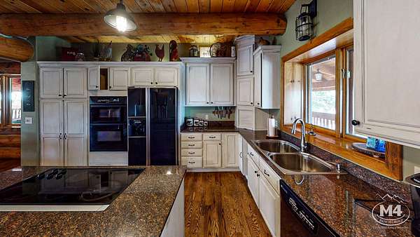 - Improvements: 5-bedroom, 4-bath Swedish Cope log home with recent updates; separate 2-bedroom, 2-bath guest house with existing rental income.