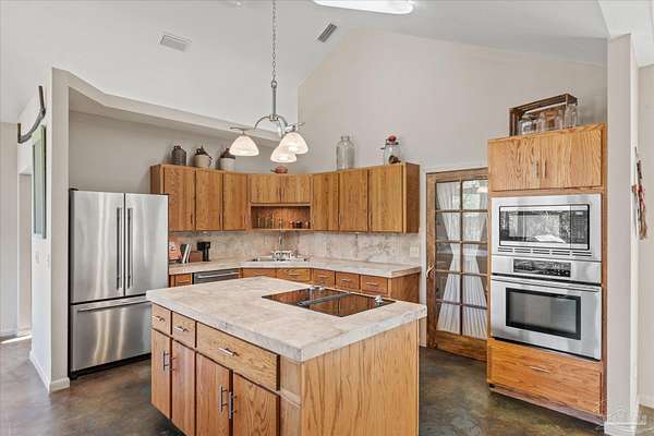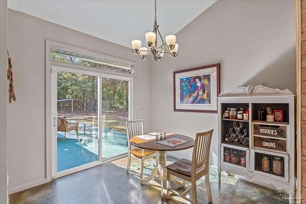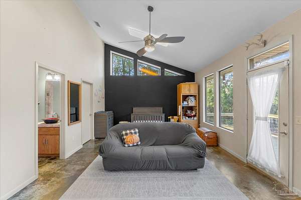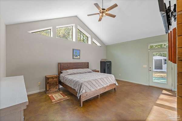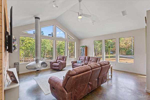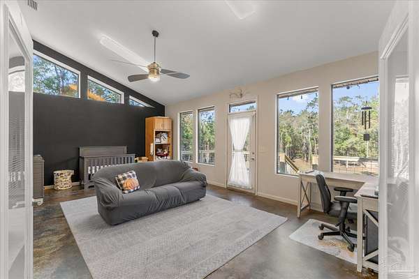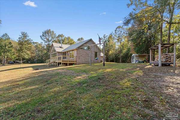 Stunning Home on 4.5-Acre Homestead in Molino! Discover your private sanctuary tucked away in picturesque Molino, Florida! This charming home sits on the southwest corner of a breathtaking 4.5-acre homestead, surrounded by the beauty of nature. Enjoy serene nights under clear, starry skies while being serenaded by the sounds of local wildlife, including deer, turkey, many types of birds and turtles.Step inside to find a bright and airy living space, adorned with large windows that fill the home with natural light. The open floor plan invites you to relax in the main area, featuring a unique fireplace that adds warmth and character. The fully equipped kitchen boasts high-end Jenn-Air appliances, perfect for culinary enthusiasts. The high ceilings throughout the home create a sense of spaciousness, enhancing the overall appeal. The main bedroom offers a peaceful retreat with a generous walk-in closet and access to an open patio, ideal for morning coffee or evening stargazing. The second main bedroom is versatile, featuring a small closet and an adjoining flex room, which could easily serve as an office, nursery, or excellent walk in closet.This property is equipped with paid-in-full solar panels, offering energy efficiency and sustainability, along with a termite bond featuring bait traps for your peace of mind. HVAC fully replaced in 2024. There is a variety of Pear, Apple, Blueberry,Plum, peach, grape trees/bushes & a few citrus trees : Lemon,Lime, & Orange. Immerse yourself in the tranquility of this remarkable property, where comfort and nature intertwine beautifully. Schedule your showing today and experience the enchanting lifestyle that awaits in Molino! DO NOT GO DOWN THE PRIVATE DRIVE UNLESS YOU HAVE AN APPOINTMENT TO SHOW WITH A LICENSED REALTOR * Thank you!! Call Dawn today for your personal showing or for any further information!