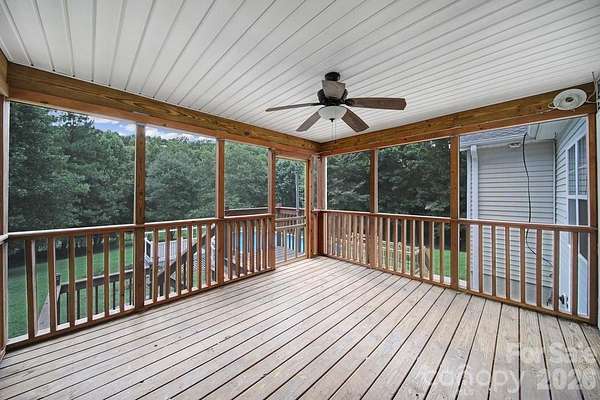 Nestled on a private lot surrounded by mature trees, this beautifully designed home offers an open-concept main level with rich hickory hardwood floors, custom built-ins, and expansive windows that fill the space with natural light. The kitchen features SS appliances, a gas range with double oven and flattop, wine/beverage fridge, bar area, large soaking sink, and ample cabinet and counter space. Each bedroom includes a walk-in closet, while the oversized primary suite offers a cozy sitting area, double vanities, and a walk-in shower. Additional highlights include a screened-in deck, fully fenced backyard with an above ground pool, and a walkout basement with a spacious family room, wood-burning furnace that heats the home, oversized storage closet with French doors, and a large rec room with crown molding and recessed lighting. Perfect for multi-generational living, the basement also includes a private entry, kitchenette, and full bath-functioning as a second living quarters. According to the CCRs, lots with 2 or more acres are permitted one horse, cow, or goat per acre. Property also includes a 20'x24' shed.