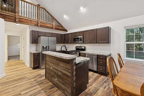 Beautiful 3 BR contemporary Farmhouse sitting on 1.72 acres in Hamilton Schools! If you prefer country living yet are looking for brand new amenities combined with a touch of rustic - please plan to tour! Brand new plush carpet, wood/laminate flooring and fresh paint throughout; faux stone countertops, new chef's sink; and new refrig & dishwasher. Stunning stacked stone fireplace within this sunny, open concept Living/Dining and Kitchen area with contrasting cocoa birch cabinets. Lower level offers family room, gas stove, and 2 more non-conforming bedrooms. Garage was built in 2015; concrete pads for firepit gathering and back deck are within 5 years old. Newer roof and furnace; brand new water heater; drainfield is 7 years old. Don't miss out on your slice of country! Please call for your private tour.