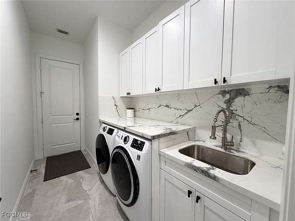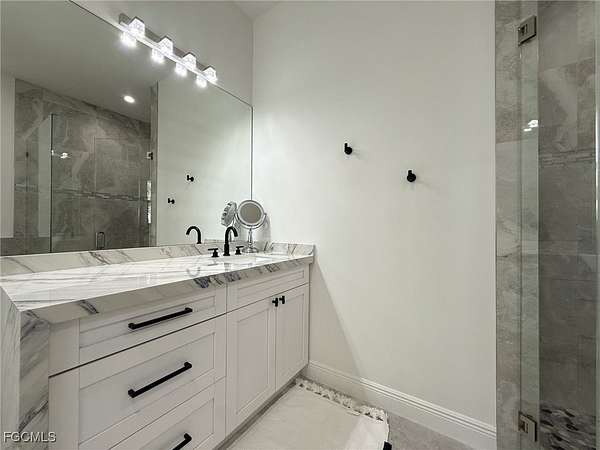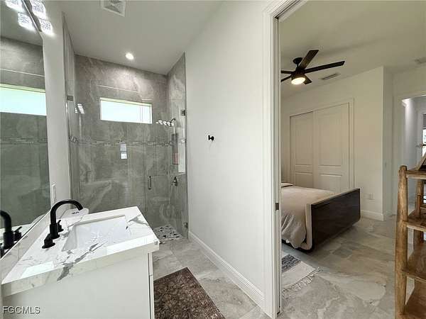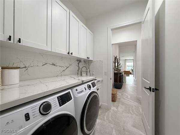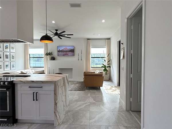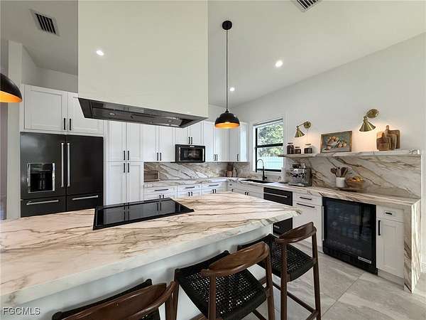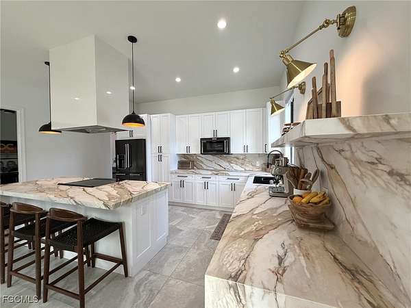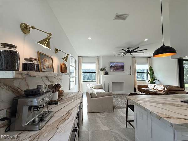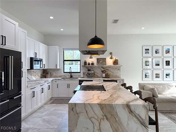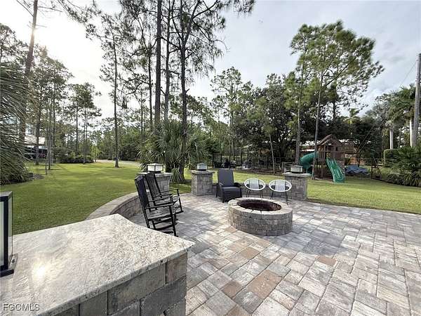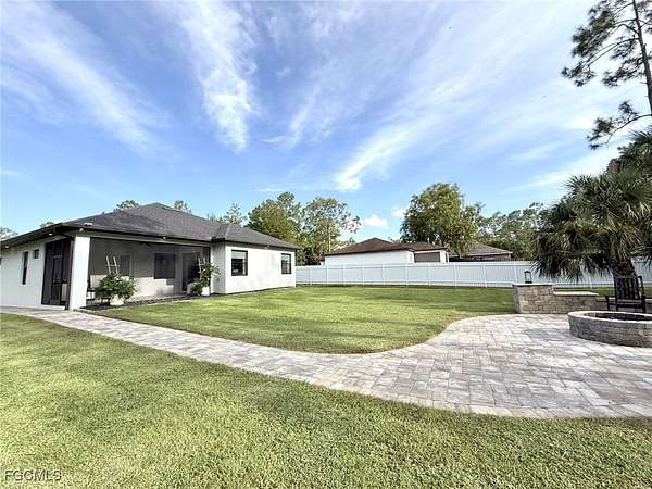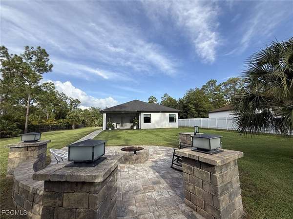 Newer construction with numerous high-end custom features that you'll truly appreciate. It starts with the paver driveway, walkway & light fire pit area. Inside you'll admire the non-porous Italian-marbled porcelain countertops throughout the kitchen, bathrooms and laundry that are fitted with black stainless Kitchen-Aid appliances. You'll find plenty of storage with the 3 car garage, carport with pad & storage sheds. Additionally, the fully fenced and gated 1.6 acre property has been landscaped with 6 zone sprinkler system and privacy hedge. You'll appreciate the split floor plan, massive master, large impact windows & doors, reverse osmosis system & high ceilings. Enjoy entertaining and the details throughout. No flood insurance needed!