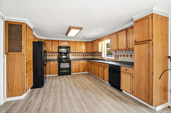 Welcome home to your own slice of paradise! Nestled on 4.59 beautiful acres with a pond between Fort Wayne and Columbia City, this inviting ranch-style home offers the perfect blend of comfort, space, and country charm. With 1,458 sq. ft. of thoughtfully refreshed living space featuring brand-new LVP flooring throughout, the home welcomes you with a spacious living room that flows seamlessly into a U-shaped eat-in kitchen with ample cabinetry and an adjoining second living area complete with a cozy fireplace. A newly updated half bath is conveniently located for guests, while down the hall you'll find a large, modern full bath with a walk-in shower and two generous bedrooms filled with natural light and storage. The laundry area sits conveniently near the garage entry, and the 20x21 attached garage has been converted into additional living space--perfect for a recreation room, home office, or studio--but can easily be restored to a two-car garage if desired. Outside, enjoy the peaceful setting with a shaded yard, a shed-turned-cabana, and plenty of room to roam or entertain, with even the potential to subdivide and sell approximately two acres if you choose. Experience the serenity of country living with the convenience of nearby city amenities--this truly is your own slice of paradise in Whitley County!