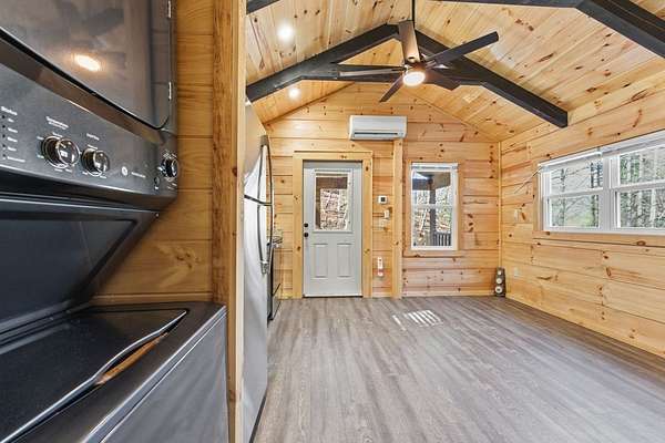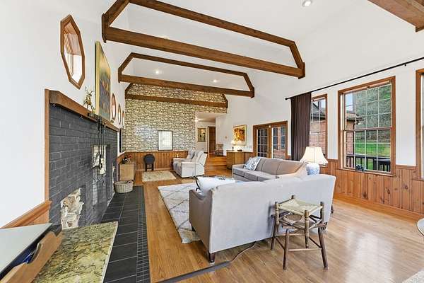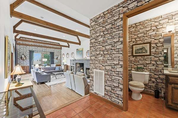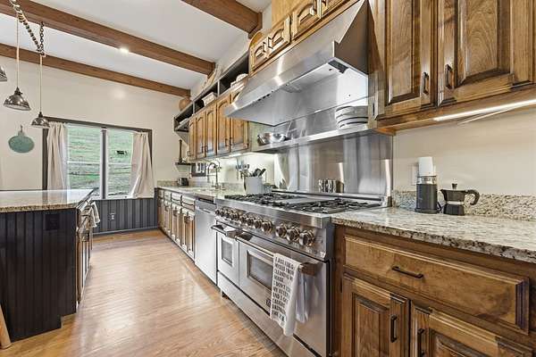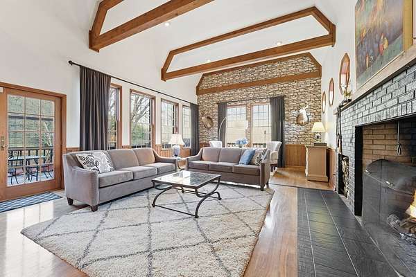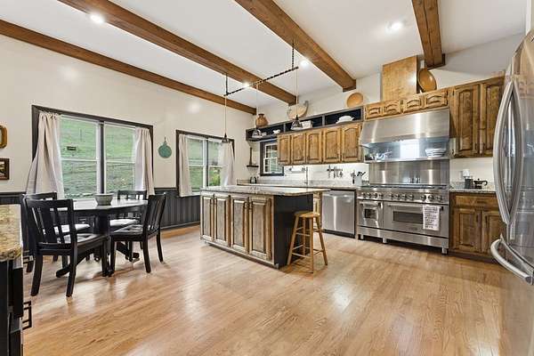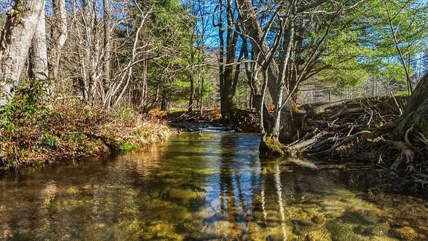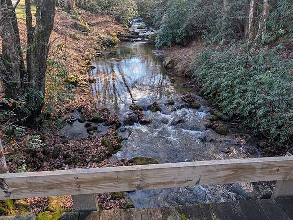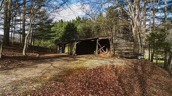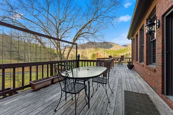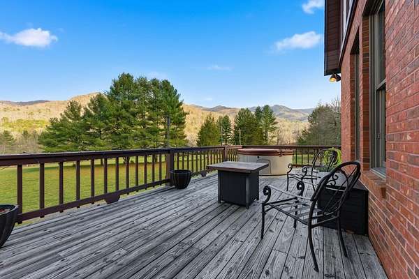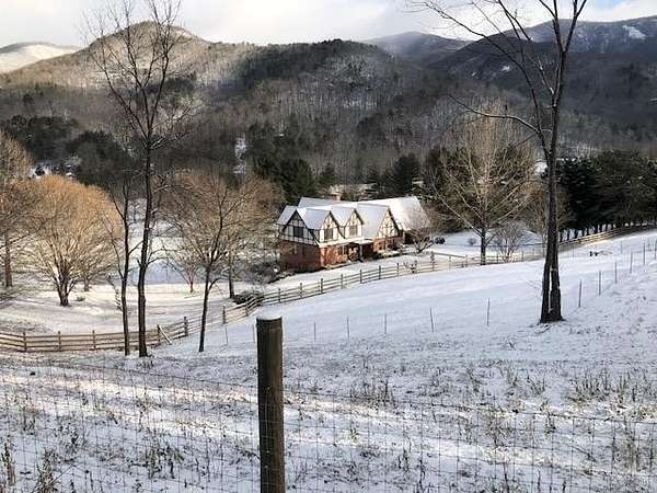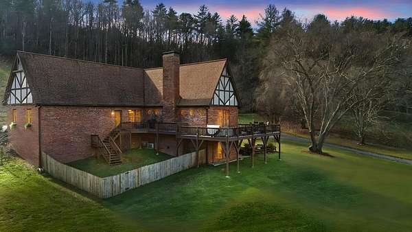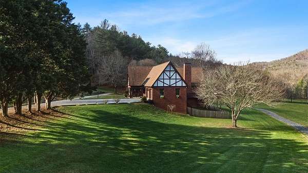 Tessentee Creek - Grand Estate--41.47 pristine, unrestricted acres in the heart of the Appalachian Mountains near Franklin and Highlands, NC. This private retreat blends classic Tudor style with extraordinary natural beauty, offering over 1,300 ft of bold trout creek frontage and stunning views of mountains, rock outcroppings, open fields, and fenced pasture. The 3-bed, 3.5-bath home features hardwood floors throughout and a vaulted living room centered around a Rumford fireplace, perfect for entertaining. The spacious kitchen includes granite countertops, a commercial gas range, island, pantries, and a sunny south-facing breakfast nook. The main-level primary ensuite is generously sized with a tile bath. Upstairs are two bedrooms and a tile bath, including one oversized room ideal for multiple beds or a sitting area. The lower level offers a TV/rec room, full bath, laundry, and a workshop large enough for ATVs and equipment, plus a terrace overlooking pasture rolling toward the creek and mountains.Completing the estate is a nearly new tiny home guest house tucked privately into the woods, barn, metal equipment building, backup generator and a creekfront picnic area.