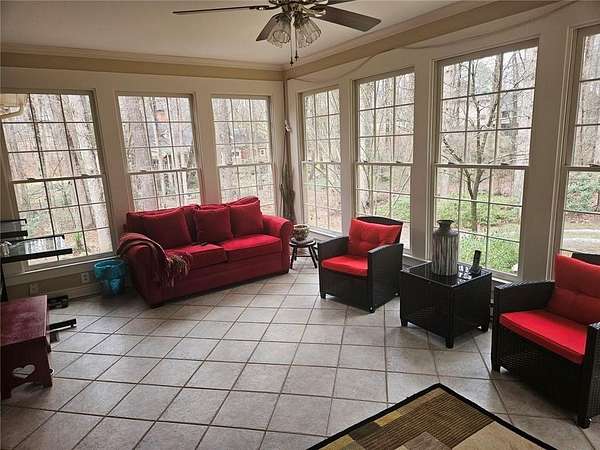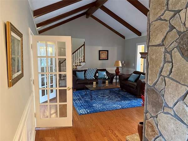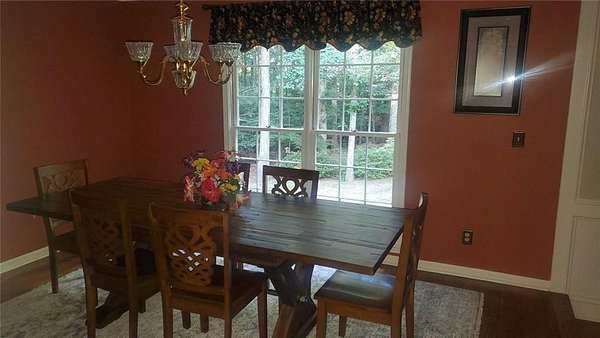 Nestled on a private 1.5-acre lot, this well-maintained home offers a peaceful retreat with generous living space and modern comforts in a desirable Snellville location. The home is available furnished or unfurnished, providing flexibility to suit your needs. The inviting main living area features vaulted ceilings with exposed beams, creating a warm, open atmosphere ideal for both everyday living and entertaining. The updated kitchen is thoughtfully designed with modern amenities and ample space for meals and gatherings. The primary bedroom is conveniently located on the main level and features an en-suite bath, offering a comfortable and private retreat. Two additional bedrooms are also located on the main level and share a completely remodeled hall bathroom, providing flexibility for family, guests, or home office use. A bright, light-filled sunroom offers the perfect space to relax and enjoy the surrounding natural setting. Upstairs, a bedroom with a private en-suite bathroom provides added privacy and versatility. Basement Use: The basement is not included in the lease and will remain unavailable for tenant use. All leased living areas are located on the main and upper levels of the home. This 4 bedroom, 3-bath home is set on a spacious and private lot, offering quiet, comfortable living in a serene setting.
