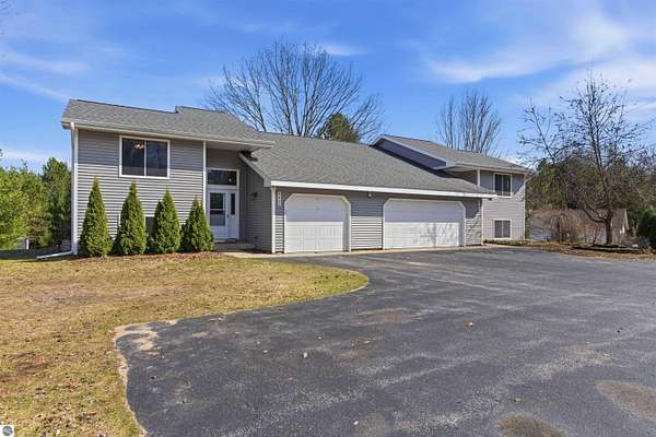 Discover a rare opportunity with this spacious and beautifully updated duplex just 20 minutes from Traverse City and moments from Long Lake beaches and the public boat ramp. Each unit has been completely renovated and offers 3 bedrooms and 2 full baths, featuring vaulted ceilings, expansive windows that flood the interiors with natural light, and large open-concept kitchens with updated appliances, new flooring, and fresh paint throughout. Thoughtfully designed for comfort and functionality, both units include separate living rooms and family rooms, finished lower levels, in-unit laundry, and private decks—ideal for relaxing or entertaining. Major updates provide peace of mind, including a new tear-off roof in 2018, two high-efficiency gas forced air furnaces and central A/C units installed in 2022, newer windows and doors, updated vinyl siding, and a newer well pump. Each unit is serviced by its own septic system, regularly maintained every two years. Situated on a quiet, low-traffic street and originally built in 1993, this property offers versatility and value—perfect as an income-producing investment, an owner-occupied opportunity to offset living costs, or an ideal setup for multigenerational living.
