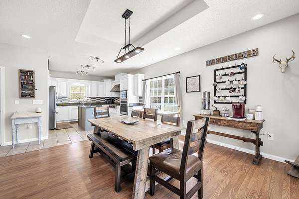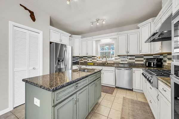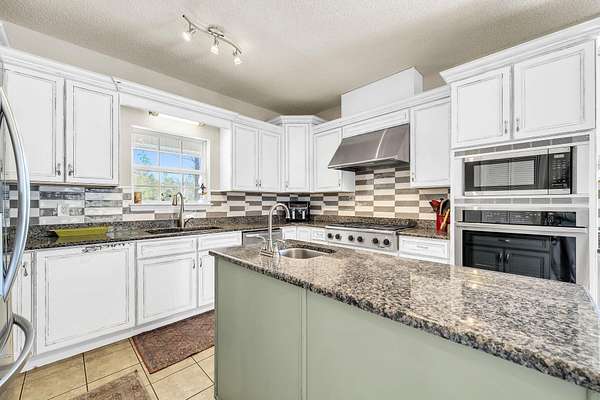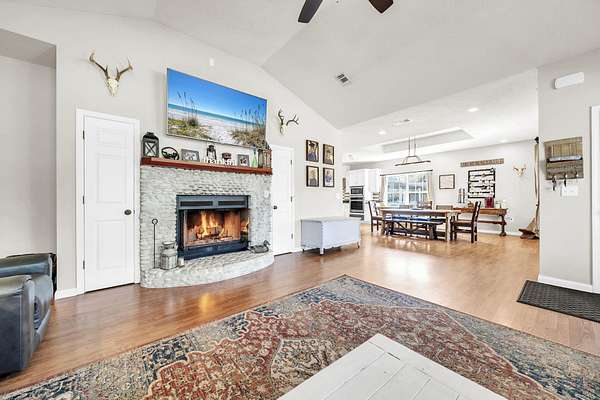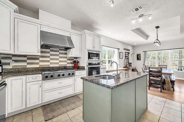 - Ceiling Raised, Ceiling Tray/Cofferd, Fireplace, Kitchen Island, Newly Painted, Pantry