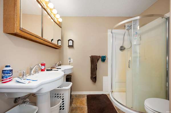 MINI FARMSTEAD OPPORTUNITY -PERFECT FOR MULTI GENERATIONAL LIVING. The home next door could be sold with this home for farm hands, family or anyone you want to live close by. Blackford County on over 4 acres has been re-surveyed to determine exact lines. The foyer is impressive with soaring 2 story ceilings, staircase splits off two directions and leads you to 3 spacious bedrooms. Two upper bedrooms share a full bath and offer spacious walk in closets. The owners suite is unique with its own private wing offering jetted tub, stand up shower, double pedestal sinks and wonderful walk in closet. Enjoy an extra possible bedroom on main floor or use as enormous office as it is currently being used. The kitchen is bright and spacious with white cabinetry, all appliances included and room for large table. French doors lead to a family room with access to patio and basement . The 2 car attached garage has double doors, openers, floor drain, storage space and tall ceilings that can accommodate trucks and cars. Utility sink, cabinetry and Newer Samsung Washer and Dryer are all part of your luxurious laundry room. The heating is super efficient with geothermal heating (seller pays for warranty), Centtral AC, New culligan filtration and softener system ($4500 system according to seller), AO Smith Water heater, Generator, Most windows new, Roof and siding 1 year old . Can be purchased with 4369 E SR 26, Hartford City . Property taxes included silos and barns which are not included in this sale. Taxes to be re assigned.
