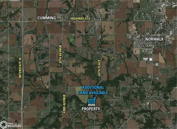 Check out this rare opportunity to build your dream home or hobby farm on picturesque acreage (10 acres m/l to be surveyed and conveyed) just south of Norwalk. This property is 5 minutes from Norwalk and Cumming, with close proximity to the Des Moines Metro. The land currently consists of a nice acreage setting on with open acres, allowing you to make this property exactly what you desire. This property does not have any covenants or restrictions! The property is currently situated as agricultural row crop land with highly productive soils. Improvements include access to Warren Rural Water and Mid-American Electric. This land is located within the desired Martensdale - St. Marys School District. Please contact the listing agent for more information or a showing of this property.