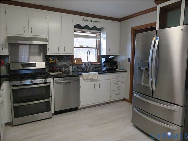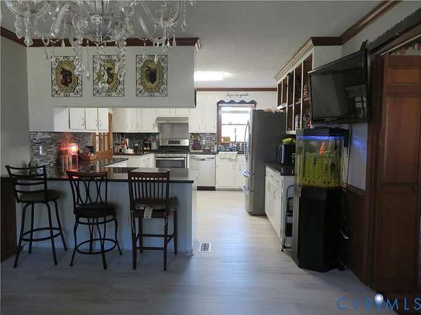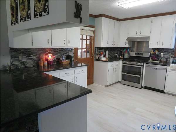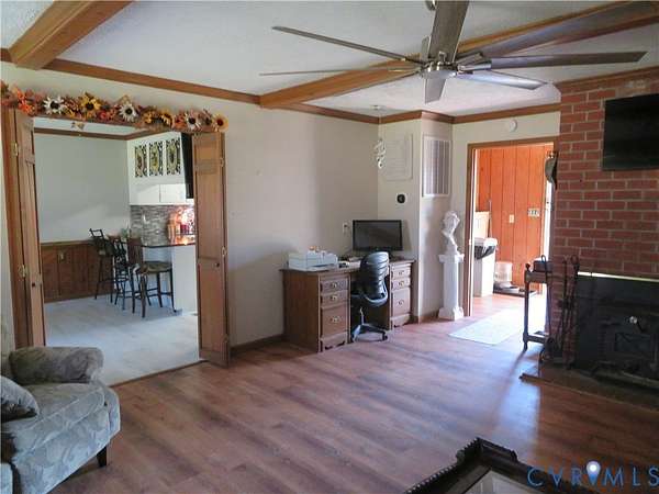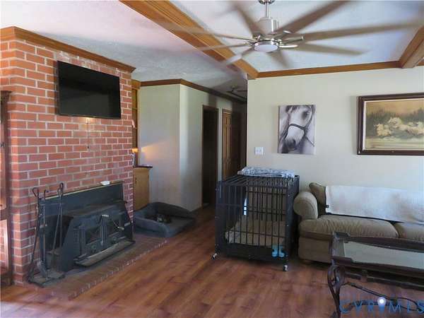 IT IS ALL HERE!!!! SERENITY with the CONVENIENCE of I-85 and 460 to enjoy your 2 acres totally fenced in with fruit trees, koi pond, with an abundance of nature to enjoy, this ALL BRICK rancher has a NEWER ROOF, GUTTERS, and HVAC system, Dual entry garage currently has a temporary partition being used as a bedroom but can easily revert back with minimal effort - LVP floors throughout interior and ceiling fans in rooms, Open Kitchen/Dining combo with bar area and plenty of room for additional table and includes all appliances - Primary suite with dual walk-in closets and a spacious bath with dual vanity - Open plan Living room with Wood burning stove/fireplace and space to relax, Huge laundry room with built in cabinets, pantry area and NEWER Washer and Dryer to convey as well - New panel box is generator wired for your convenience. The property is CENTRALLY located for Colonial Heights, Emporia and South Hill so please call with any questions and to take a look at this property today...................