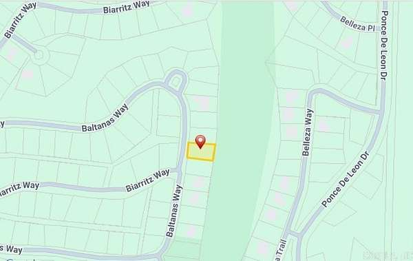 from East Gate travel 2.1 miles then turn right onto Ponce de Leon Dr, turn left onto Lavanda Ln, turn right onto Baltanas Way, just passed Biarritz Way the lot is on your right.