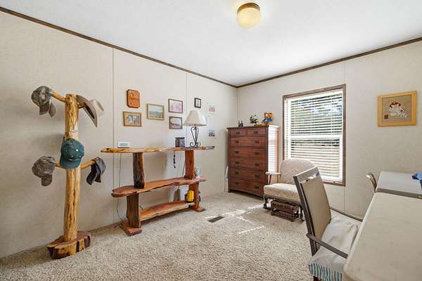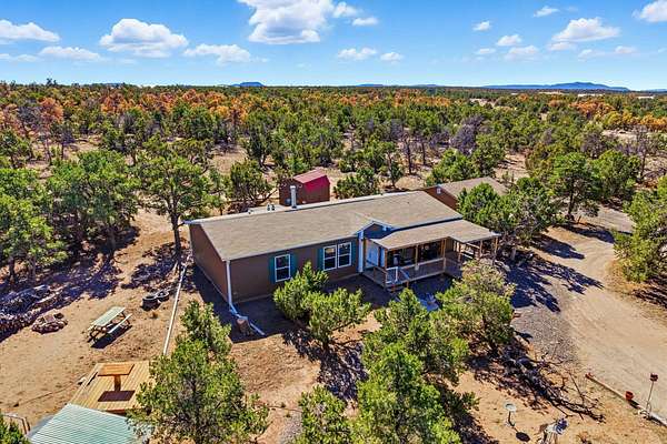 Escape to peaceful country living in this charming 3-bedroom, 2-bath home nestled on 3.25 acres in beautiful Spring Canyon Ranch. With 1,456 sq. ft. of well-maintained living space, this property offers comfort and function throughout. The home features laminate and carpet flooring, a cozy wood-burning fireplace for chilly winter nights, and a spacious kitchen and living area perfect for family gatherings. Outside, enjoy a covered front porch ideal for soaking in enchanted New Mexico sunsets and star-filled skies. The property includes a two-car garage, multiple outbuildings, a poultry chicken coop, dog kennel with run, and a raised garden bed. Less than an hour from Springville, Arizona--close to all your amenities yet far enough for true serenity. Property comes furnished!