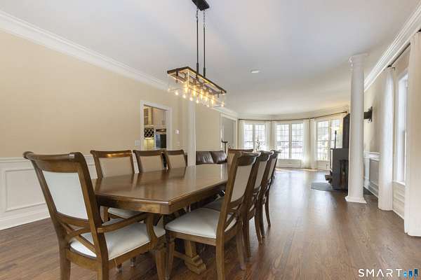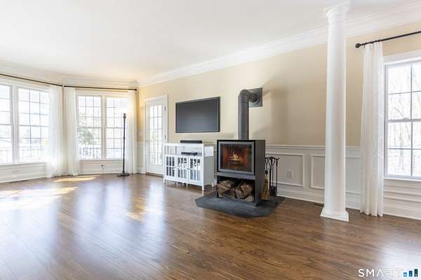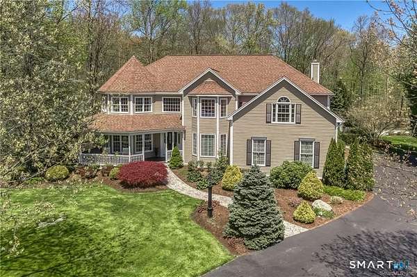 Highest & best offers requested by 9am 02/05 Thur on this Gorgeous home in Heritage Ridge Estates-one of the area's most coveted subdivisions of luxury residences. This richly detailed sun-splashed 5-bedroom, 3.5-bath home enjoys a premier cul-de-sac setting on a 1.64-acre property with an in-ground pool abutting five private wooded acres of open space, offering remarkable privacy and serenity. This beautifully updated home features a dramatic two-story foyer, an elegant round turret room, and a flowing open floor plan ideal for both everyday living and large parties. The gorgeous kitchen showcases granite countertops, a center island, a pantry, tumbled marble backsplash, and new appliances, including a Wolf gas cooktop. It opens seamlessly to an impressive great room with a cathedral ceiling and a gas fireplace. Sliding doors lead directly to a vaulted, screened sun porch with a ceiling fan, perfect for relaxed summer evenings and effortless indoor-outdoor living overlooking the private deck, pool, and property. A pillared dining room, accented with double crown and wall moldings, connects to the formal living room, which features a new wood-burning stove by Stuv, a premier European brand, and French doors to the dreamy wrap-around front porch. Throughout the home, you'll find refinished and new hardwood floors, adding warmth and polish. Additional highlights include a newer 2020 roof, a 2021 HVAC system, a Generac whole-house generator and surround-sound audio inside and ou