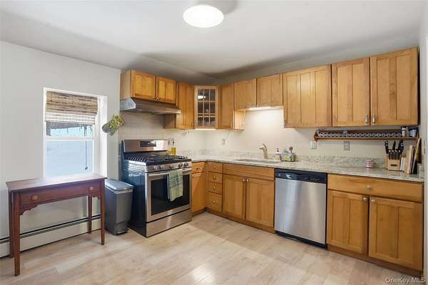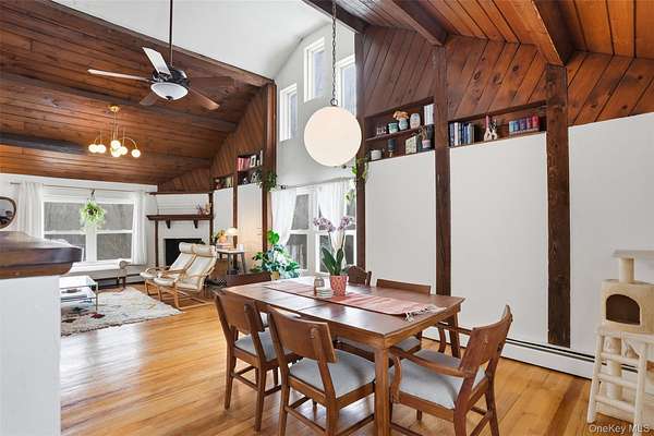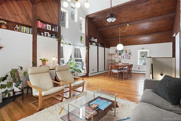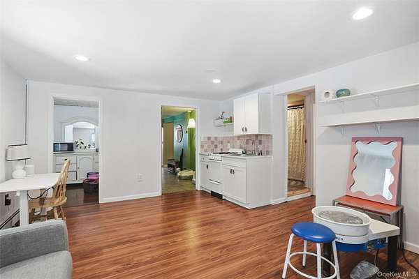 Welcome to 44 Clearwater Road, a beautifully maintained and thoughtfully updated home set on 2.8 serene acres in Highland, offering approximately 2,850 sq ft of versatile living space. The upper level features three spacious bedrooms, two full bathrooms, and a stunning, newly renovated kitchen (2023). Step into the light-filled living room with vaulted pine ceilings and a cozy fireplace, where abundant natural light and an open layout make entertaining and everyday living a delight. Hardwood flooring was added to select upstairs bedrooms in 2023, enhancing the home's warm, inviting feel. The finished lower level includes an accessory living space, completed in July 2025, offering flexible space for guests, or extended stays. Recent updates include a new roof (2023), kitchen renovation (2023), furnace and well pump (2017), and septic system recently pumped (Oct 2025). The home is heated by efficient oil baseboards. Ideally situated just 2 minutes from the Hamlet of Lloyd's shops and restaurants, 5 minutes to the Walkway Over the Hudson, 10 minutes to Metro-North Poughkeepsie Station, and 10 minutes to New Paltz, this home offers the perfect balance of privacy, convenience, and Hudson Valley charm-just 90 minutes to the GW Bridge.