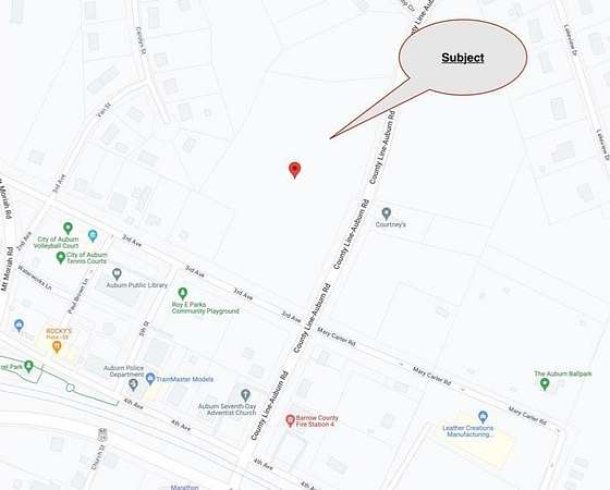 Est $4,087/moApproximately 7.14 acres corner lot in the city limits and the Overlay district of Auburn GA! The current zoning is C-2 .There are many possible uses including senior living facility, retail, Mixed use, church facility etc There is road frontage on two streets. Approx 891 feet of frontage on County Line Auburn rd and approx. 364 feet on 3rd Ave. Gentle topography makes this a great piece for almost any use.