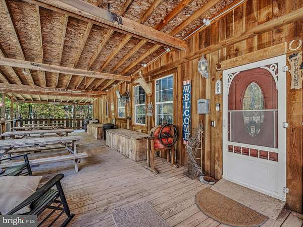 56.14 acres of mixed wooded and open land offer endless possibilities, from living on the property to renting out cabins, buildings, and multiple campsites. Many sites are equipped with electricity and hookups for water and sewer, while others are primitive. There is street lighting throughout. The main building, called The Lodge, currently serves as a common area for all the cabins but it could be the main house. It features heat and air, cozy woodstove, bathrooms, laundry, showers, a game room with pool table, a library, and a private kitchen for owners. The Lodge's upper deck includes a beautiful area for entertaining or watching the sunrise with your morning coffee . The property boasts approximately 3.1 miles of trails for hiking or ATVs, two ponds, and a pavilion with electricity, water, and nearby bathrooms. There is also a fenced area that once served as a small petting zoo. With so much potential, this property is ready for its next chapter. Locked gate-no drive-bys.
