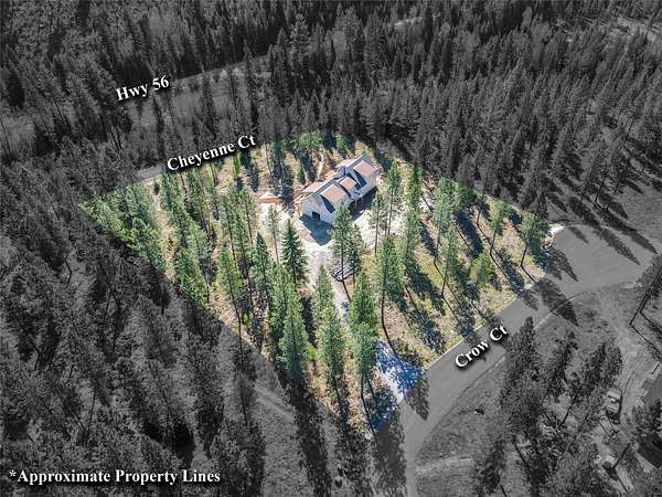 Hwy 2 West out of Libby. Turn left on Hwy 56. Stay on Hwy 56 for approximately 6 miles. Take a right on onto to Shoshone (near mile marker 28) which is the gravel road that leads to the entrance of the subdivision. Take a left on Lakota Loop. Take a left onto Crow Ct. Property is on your left. Sign on property. For navigation systems, enter Shoshone. Crow Ct. doesn't show up on navigation.