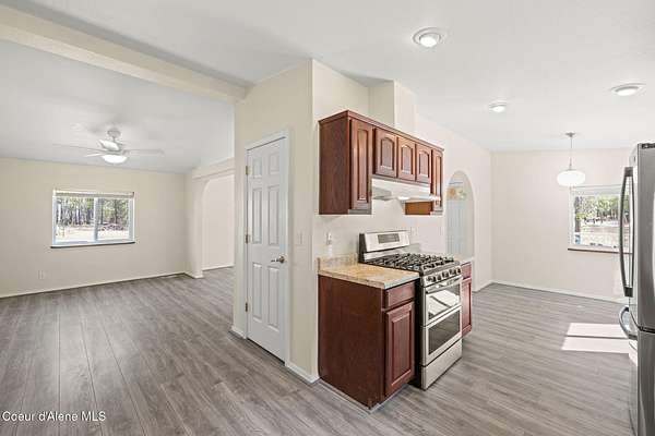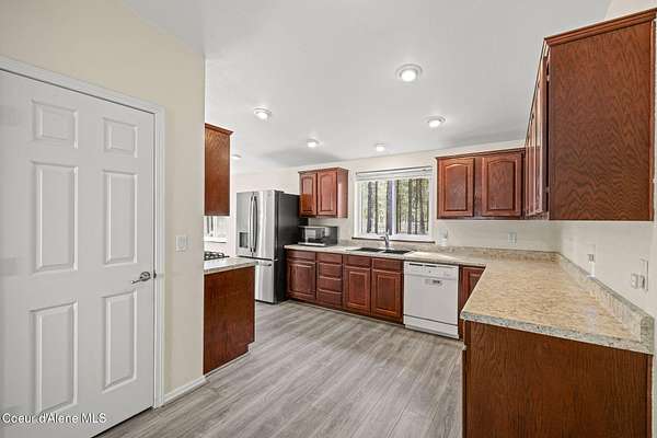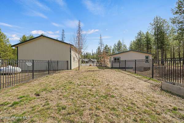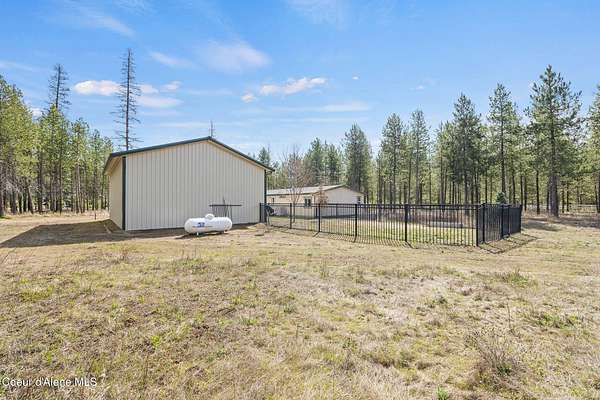 Welcoming 3BD/2BA, 1,620 sq.ft. home on 5.12 acres with shop & private well! This well-maintained 2017 manufactured home is set as real property and offers a comfortable, functional layout in a peaceful North Idaho setting. The kitchen features a breakfast nook, pantry, and propane gas range, with a separate dining room and laundry room nearby. LVP flooring runs through the main living areas and master bedroom. The master suite includes a dual-sink vanity, a jetted tub, and separate shower. Additional features include central A/C and a whole-house generator hookup. Outside, you'll find a fenced area, 30x40 shop, and a nicely treed property with open spaces that let the sun to pour in. Includes private septic system and private well with cistern. CC&Rs allow horses and cattle.