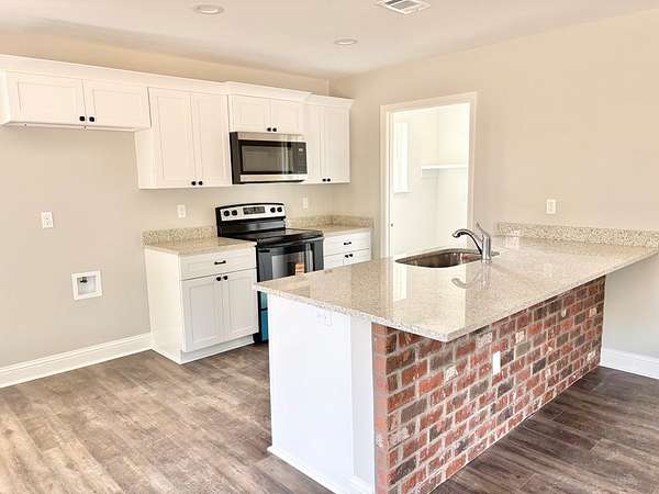 Est $1,140/moBRAND NEW 3 BEDROOM 2 BATH BRICK HOME AT AN AFFORDABLE PRICE!!! Custom shaker cabinets and granite counters. Stainless appliances! Spacious and open living/dining area. Large open back yard with woods in back for privacy. Beautiful New home in quiet area. Close to schools, restaurants, shops, etc. Only 2 miles from town.
