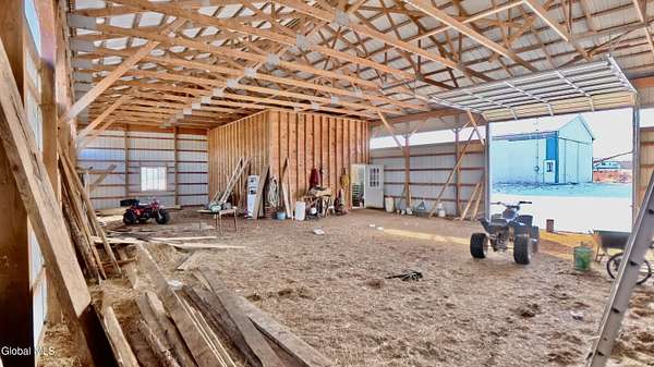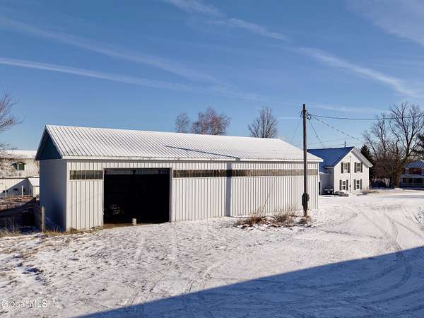 There's something special about a property that gives you space--not just physically, but the kind of space where ideas start to take shape. Tucked into the Village of Chateaugay, this property is centered around a substantial 60' x 40' pole barn that immediately sets it apart. Solidly built and thoughtfully laid out, it offers the kind of versatility that's hard to find--ideal for storage, a workshop, equipment, hobbies, or even a small business setup. Inside the barn, you'll find power already in place along with a 20-foot workbench ready for projects of all kinds. A covered carport with a concrete pad adds additional protected space, while the remaining floor is finished with durable red clay Item #4 gravel for easy maintenance and long-term use. Public sewer is available at the road, creating added flexibility for future plans. The property is accessed via a deeded right-of-way that functions as a shared driveway. The home is present and offers a footprint to work from, but will require updating--giving the next owner a chance to bring their own vision and add value over time. This is the kind of property where function meets potential--where you can store more, build more, and create something entirely your own.