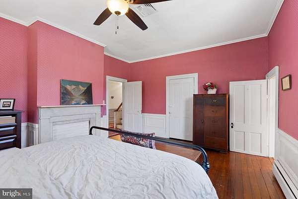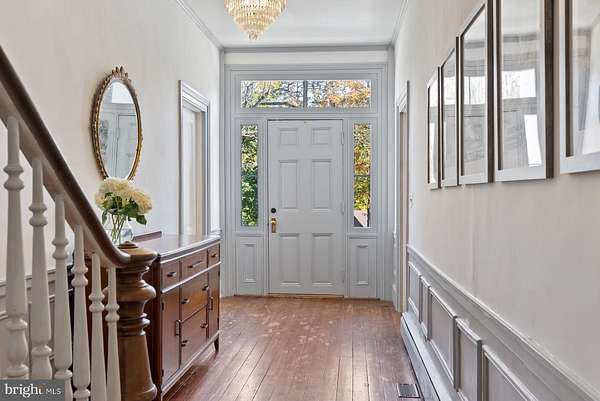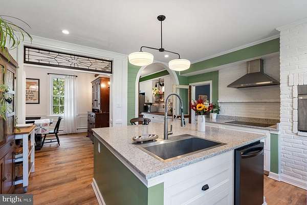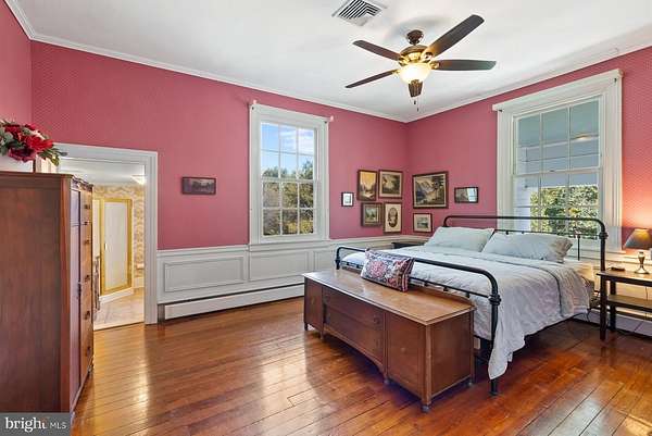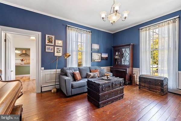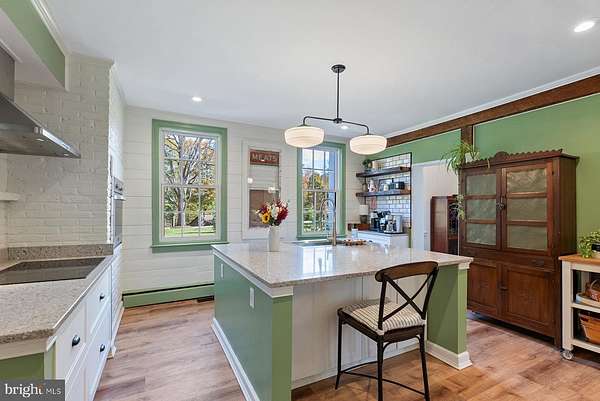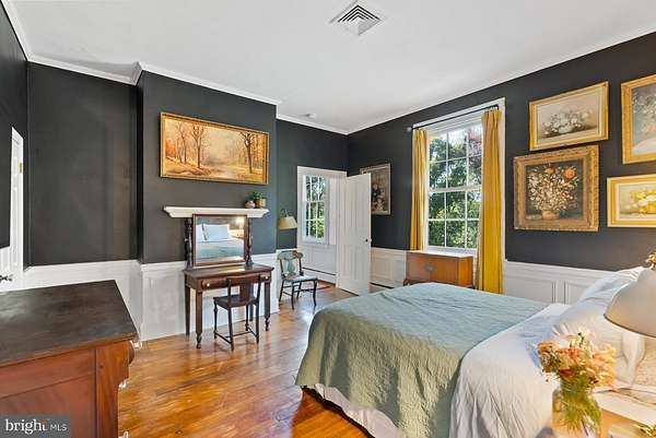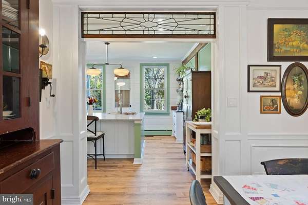 - Butlers Pantry, Chair Railings, Country Kitchen, Crown Moldings, Dining Area, Island Kitchen, Pantry, Primary Bath(s), Stain/Lead Glass, Walk-In Closet(s), Wood Floors