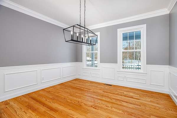 EXCITING NEWS! SELLER WILL CONTRIBUTE $20,000 FOR A 2/1 BUY DOWN. TAKE OFF 2% YEAR OFF YOUR MORTGAGE RATE 1 AND 1 % YEAR 2. 11 rooms, 4 bedrooms, 3 bathrooms on a 2.99 acre flat lot. Home office, a second floor laundry, hardwood throughout. The living room, a central gathering space, features a comforting electric fireplace and a beautifully crafted coffered ceiling, creating an inviting atmosphere for relaxation and entertainment. Imagine evenings spent enjoying the warmth of the fireplace, surrounded by the appealing architectural details that make this room truly special. The property also includes a welcoming front porch, providing a delightful space to enjoy the surrounding natural beauty, and a deck, ideal for entertaining guests or simply unwinding in the fresh air. Home is ready for immediate occupancy. TOWN WATER AND TOWN SEWER.