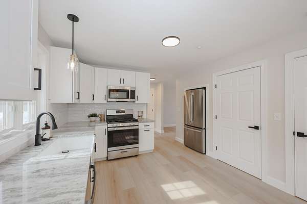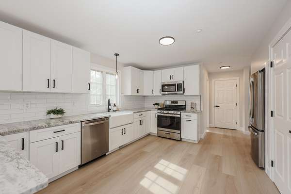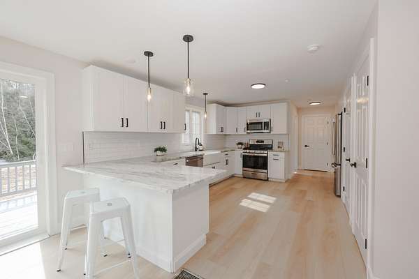 Tucked away at the end of a cul-de-sac in a peaceful country setting, this beautifully updated home sits on just over 2 acres, offering the perfect blend of space, comfort, and modern style. A classic farmer’s porch welcomes you, providing the perfect spot to relax and take in the surrounding landscape. Built in 2003 and thoughtfully renovated, this property has everything you’ve been looking for. Step inside to discover a stunning, fully updated kitchen featuring brand-new cabinetry, sleek new appliances, a farmer’s sink, and a spacious peninsula, perfect for cooking, gathering, and entertaining. The kitchen flows seamlessly into a bright and airy living room filled with natural light, complete with a sliding door leading out to the back deck, ideal for relaxing or hosting outdoors. The first floor also includes a formal dining room and a convenient half bath with laundry hookups, adding both functionality and ease to everyday living. Upstairs, you’ll find three generously sized bedrooms, including a spacious primary suite with a large walk-in closet and a beautifully renovated ensuite bathroom featuring a double vanity. The additional full bathroom, shared by the other two bedrooms, has been tastefully updated with a newly tiled shower, new flooring, and all new fixtures. The partially finished lower level offers flexible living space, ideal for a home office, gym, or recreation area- and provides direct access to the 2-car under garage. With new lighting, fresh paint, and updated flooring throughout, this home truly feels like new. Set in a private, serene location while still convenient to local amenities, this property offers the best of both worlds. Don’t miss your chance to make it yours.