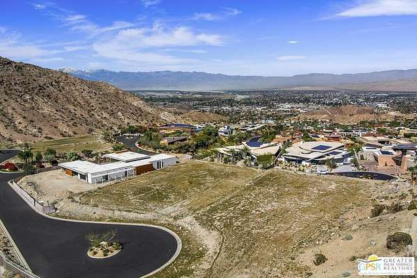 Set high in the dramatic foothills above Rancho Mirage, 44 Rim Crest presents a rare opportunity to acquire one of the most elevated homesites within Mirada Estates, a prestigious guard-gated enclave of luxury estate residences. Positioned on the highest street in the community, the lot enjoys unobstructed panoramic views that sweep across Rancho Mirage and the entire Coachella Valley, extending to the northern mountain ranges and illuminated city lights below. From sunrise to sunset, the setting captures expansive desert skies and a remarkable sense of scale rarely found in the valley. Mirada Estates is uniquely affiliated with the nearby Ritz-Carlton Rancho Mirage, offering residents access to the resort's world-class amenities along with preferred privileges and discounts on dining and spa services. This exceptional connection allows homeowners to enjoy the privacy of a secluded hillside estate while having resort-level services just moments away. This offering is for the vacant lot, with a remarkable architectural concept available separately for purchase. The proposed residence was designed by acclaimed architect Lance O'Donnell, FAIA, of o2 Architecture, whose work continues the region's celebrated legacy of desert modernism. Importantly, the architectural plans have already been approved by both the Mirada Estates HOA and the City of Rancho Mirage, providing a significant advantage for a future owner ready to begin construction. The conceptual design envisions approximately 7,633 square feet of interior living space, including a three-bedroom main residence with a den and three-and-a-half bathrooms, centered around an expansive great room and seamless indoor-outdoor living oriented toward the valley views. The plans also include a separate two-bedroom guesthouse with two bathrooms, thoughtfully positioned for privacy and featuring its own driveway and dedicated parking area. Parking and access have been carefully considered, with the main residence designed to include a three-car garage plus a dedicated golf cart garage, along with a two-car carport for additional covered parking. A detached fitness pavilion is also incorporated into the design, creating a private wellness retreat integrated into the surrounding desert landscape. Inspired by the modernist tradition of architects such as Albert Frey, E. Stewart Williams, and William F. Cody, the design emphasizes sustainability, orientation, and harmony with the desert environment. The architectural plans for the proposed residence are available for separate purchase, providing buyers with the opportunity to create an extraordinary custom estate on one of the most spectacular view homesites in Rancho Mirage.