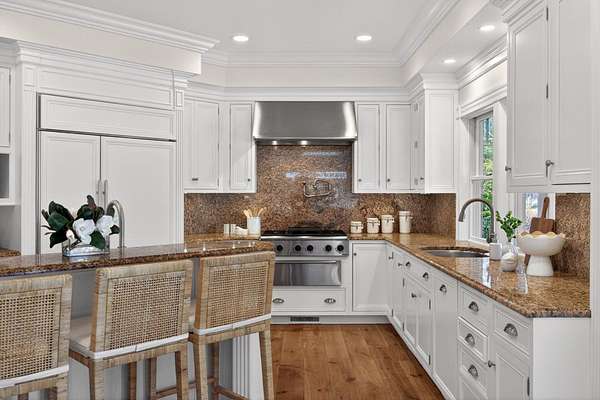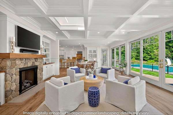 Set on 3.4 acres of meticulously landscaped grounds in Osterville's coveted Seapuit neighborhood, this magnificent Colonial estate offers the best of modern living on a grand scale. The five-bedroom main residence showcases architectural splendor and attention to detail throughout, with seamless access to expansive outdoor living spaces. Rivaling a private resort, the grounds boast rolling lawns, a sports court, a dazzling swimming pool, and a poolside guest house with a kitchenette and two en suite bedrooms. On the main level of the home, an eat-in chef's kitchen opens to a stunning great room with a grand stone fireplace and glass doors that seamlessly connect to the pool area. The first-floor primary suite offers comfort and convenience with a sumptuous bathroom and access to a private patio overlooking the gardens. On the second level, four well-appointed guest bedrooms provide refined accommodations for family and guests, with additional bonus space for any occasion. Ideal for the car collector, the home is equipped with an attached three-car garage and drive-in lower level offering additional storage or a workspace. Located minutes from everything Osterville has to offer, this exceptional lifestyle property is ready to be enjoyed.