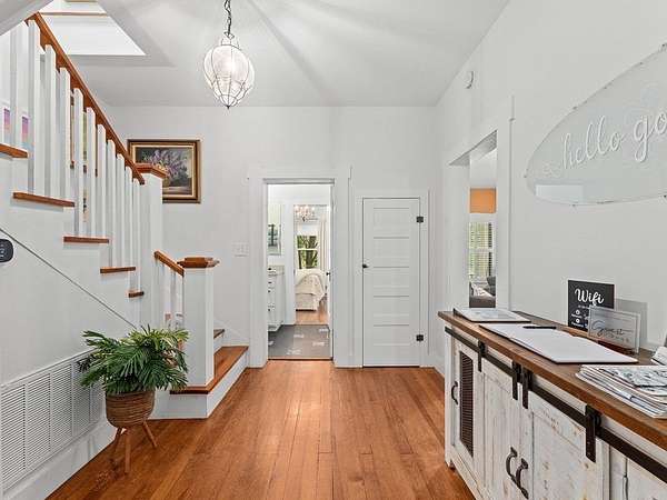 Experience the best of Fredericksburg living in this beautifully updated two-story farmhouse nestled on 1.54 acres just beyond the city limits. Currently operating as a successful short-term rental, this versatile property also offers the ideal layout for a full-time residence or weekend getaway. Thoughtfully updated throughout, the main home exudes modern comfort while preserving its original charm. Step inside to find an inviting living area filled with natural light, warm wood floors, and crisp trim accents. The bright and airy kitchen features shaker-style cabinetry, subway tile backsplash, stainless steel appliances, and a farmhouse sink -- blending functionality and style perfectly. With multiple bedrooms and spacious living spaces, the home easily accommodates families and guests. Outdoor living shines here -- enjoy morning coffee on the front porch, gather around the fire pit under the oaks, or unwind in the private hot tub after a day exploring the wineries. The screened porch and large deck create seamless spaces for entertaining year-round. An added bonus is the detached building/barn/shop featuring solar panels, providing additional energy efficiency and potential for workshop, studio, or guest space use. Located just a few minutes from Main Street yet surrounded by the tranquility of the Hill Country, this property combines convenience with peace and privacy. Whether you're seeking a turn-key investment or a forever home, this Fredericksburg retreat delivers timeless Texas charm with modern amenities.