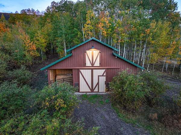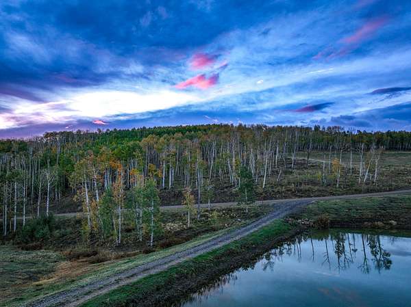 - Land & Water: About a half-acre, spring-fed private pond stocked with rainbow trout; aspen groves and mature timber throughout the property.